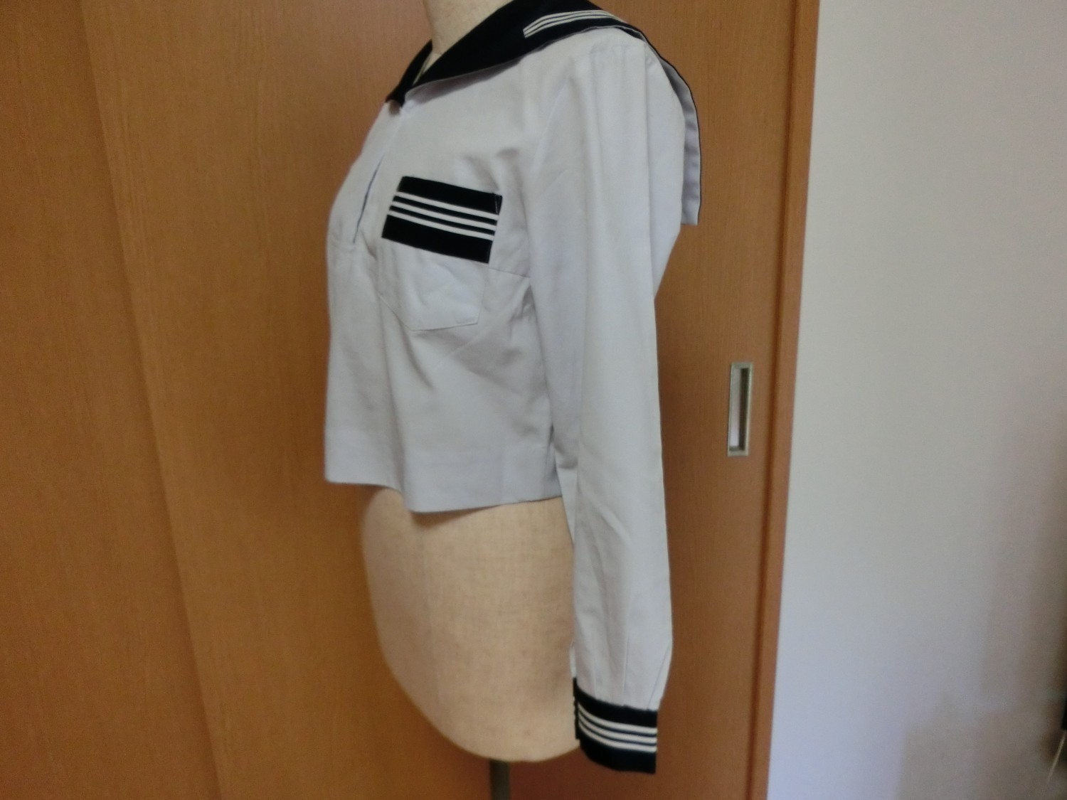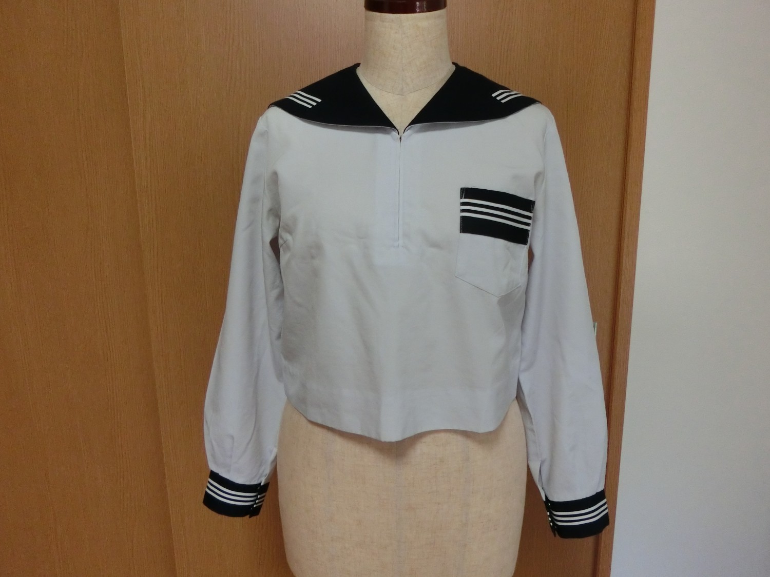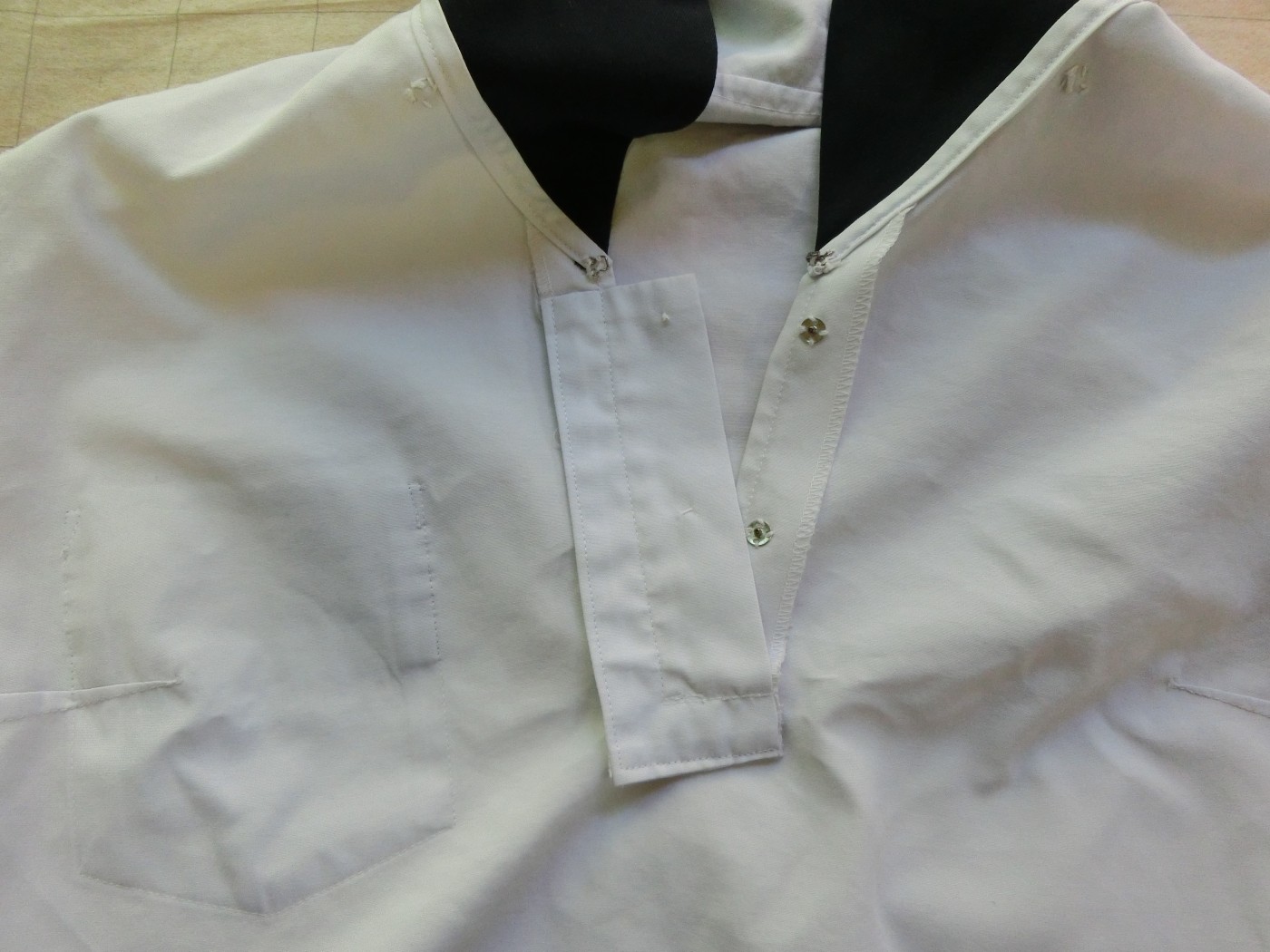 かぶり式 切り替えカラー 胸ポケットは貼り付けポケット 胸ぐせダーツ 肩ダーツ