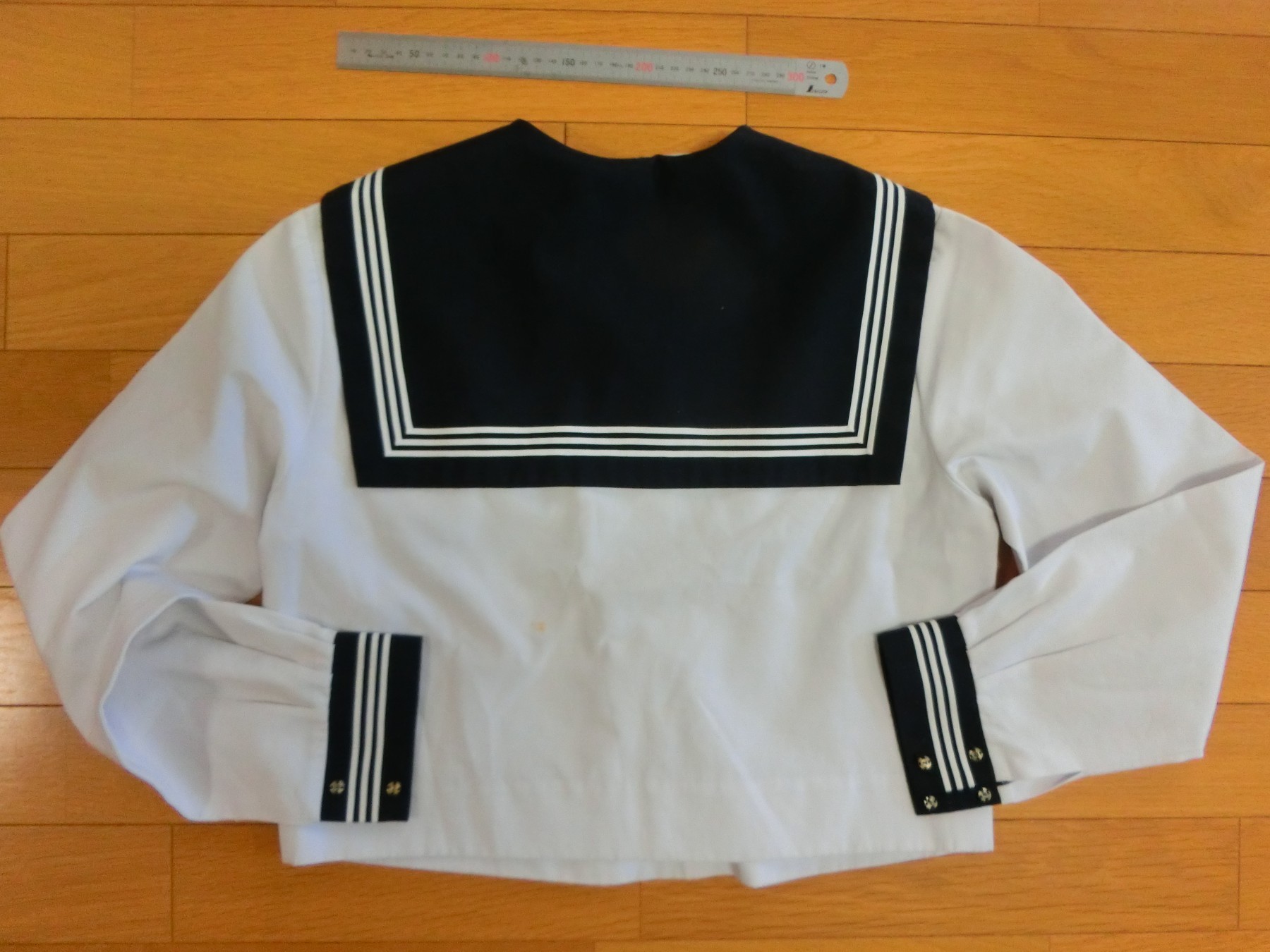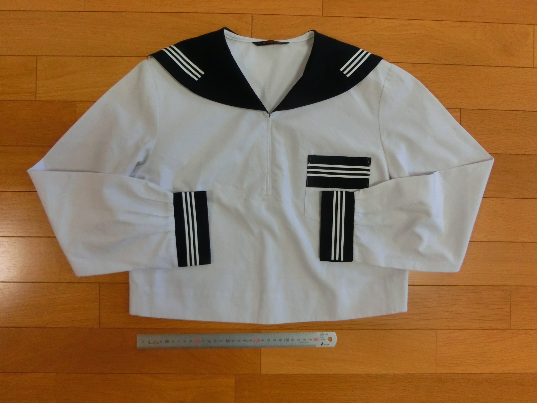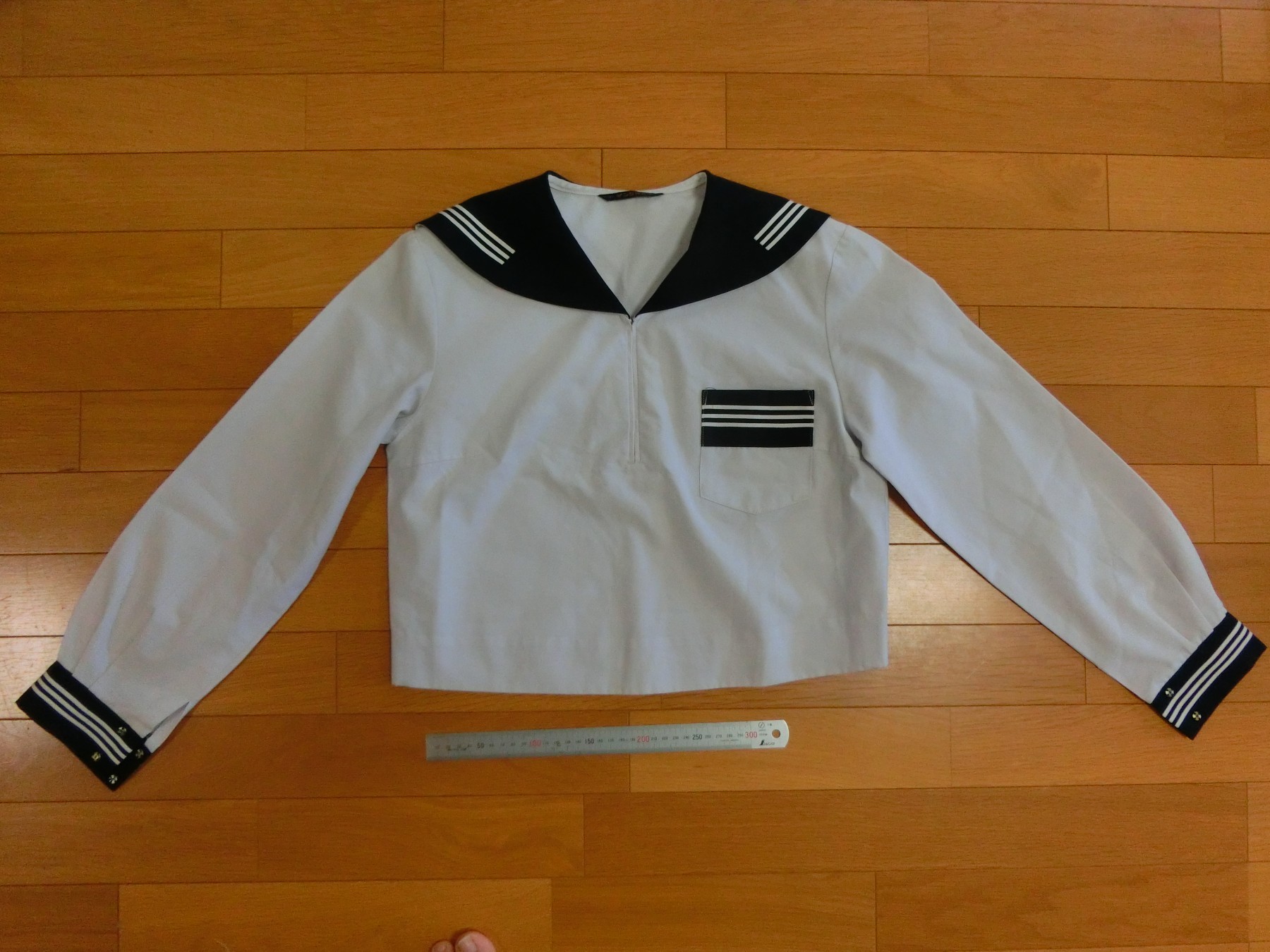 かぶり式 切り替えカラー 胸ポケットは貼り付けポケット 胸ぐせダーツ 肩ダーツ