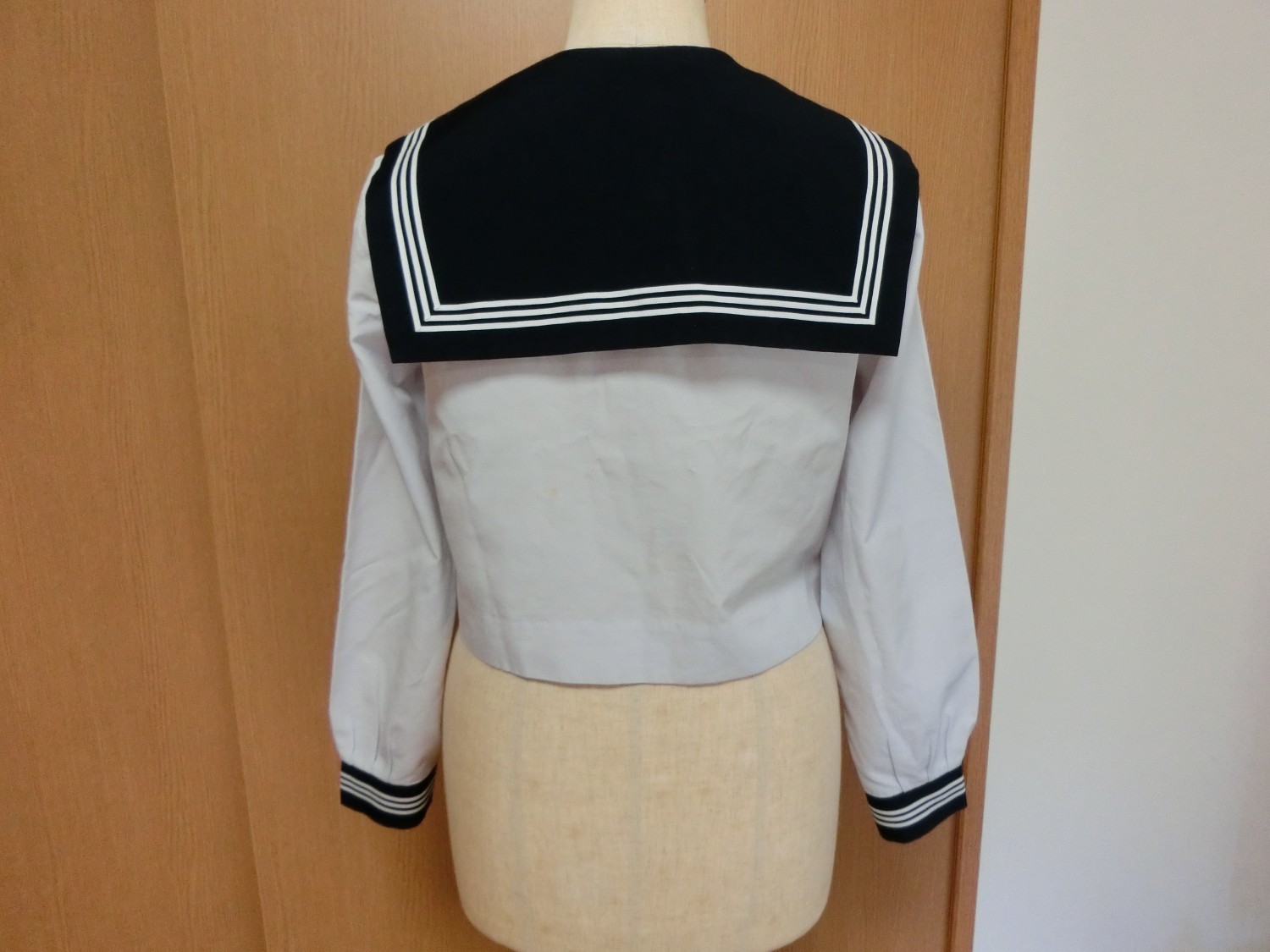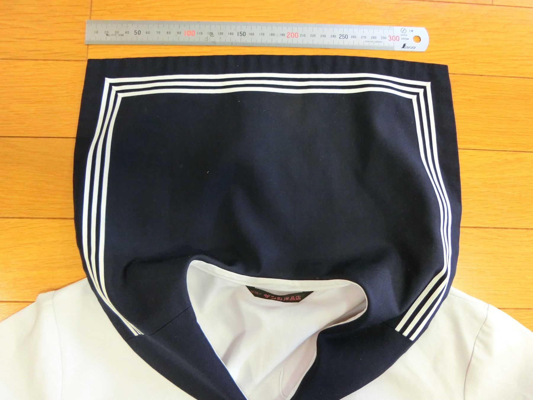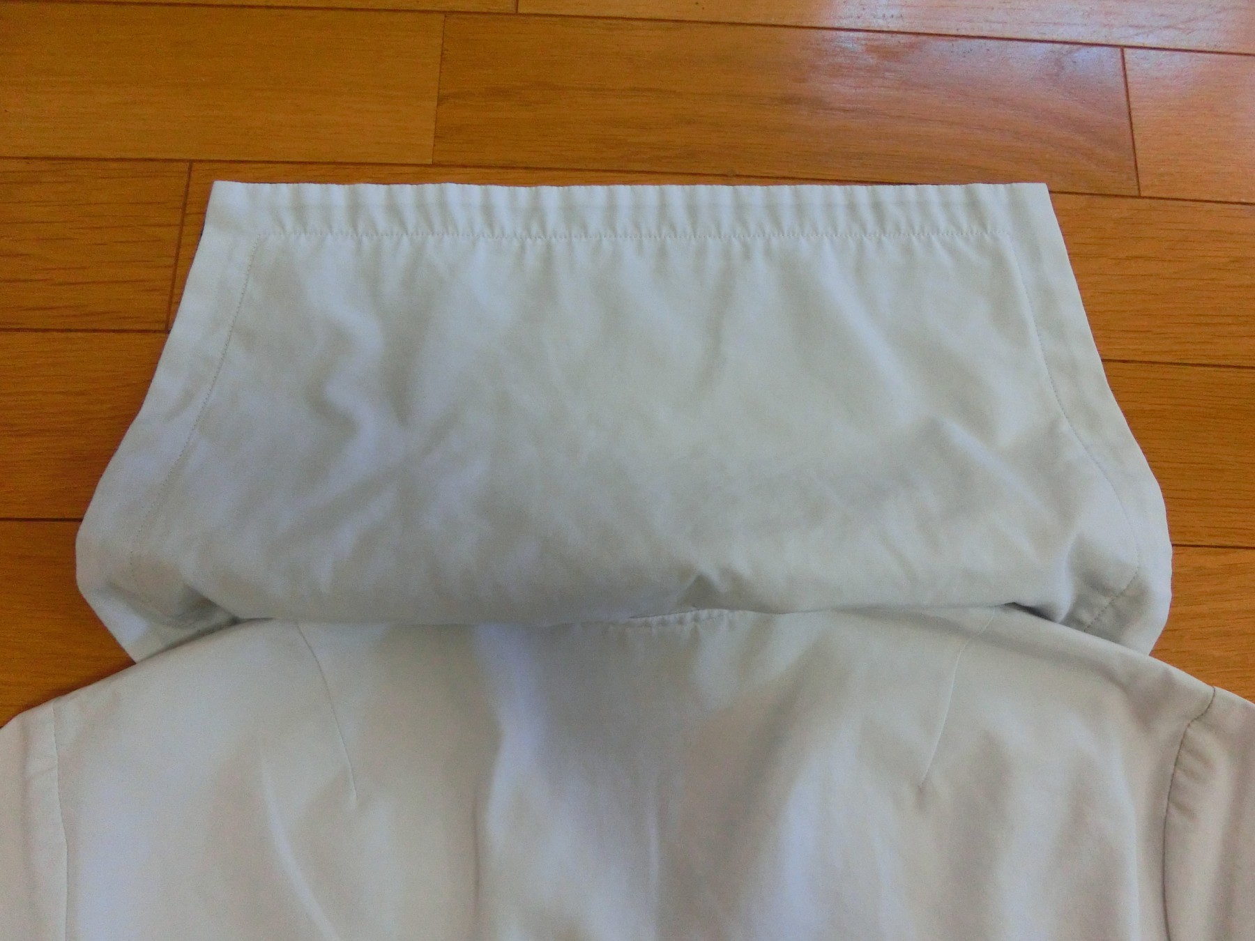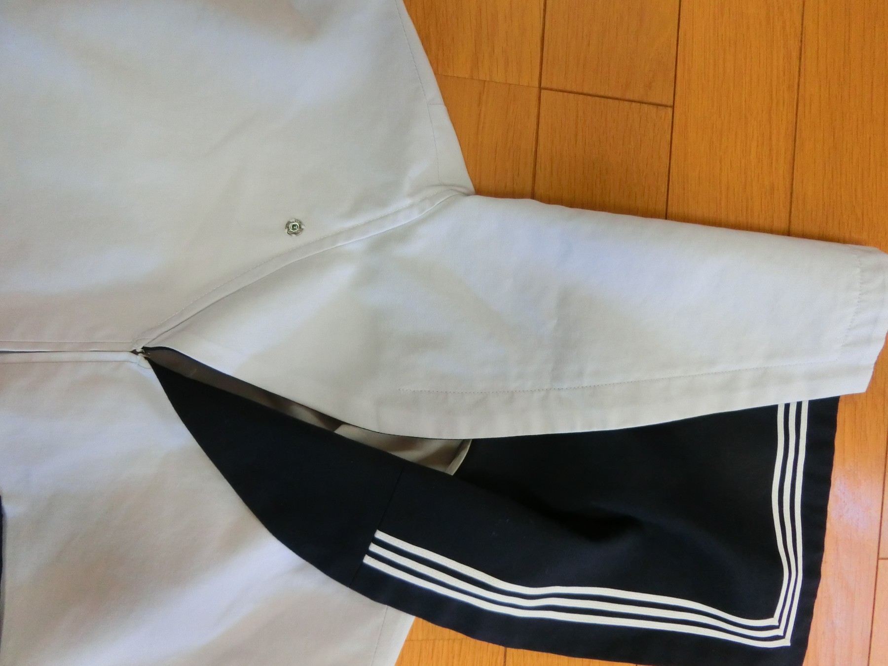 胸あきは玉縁になってるけど、見返しが玉縁ポケットの玉縁布の幅しかないので、衿付けは 衿を全集身ごろとバイアステープではさんで処理する変わった方法を採用しています