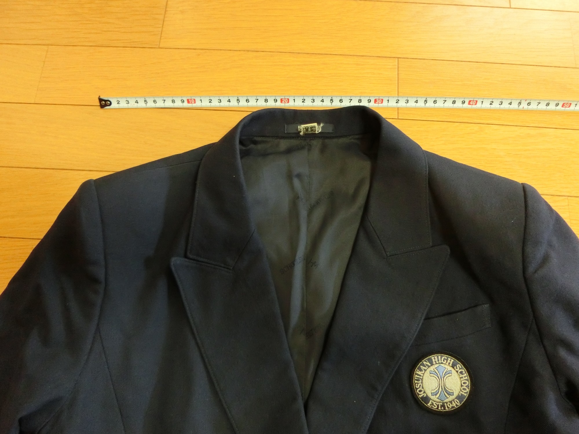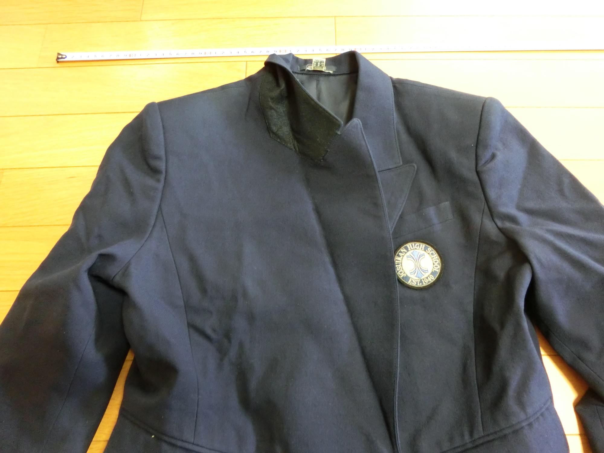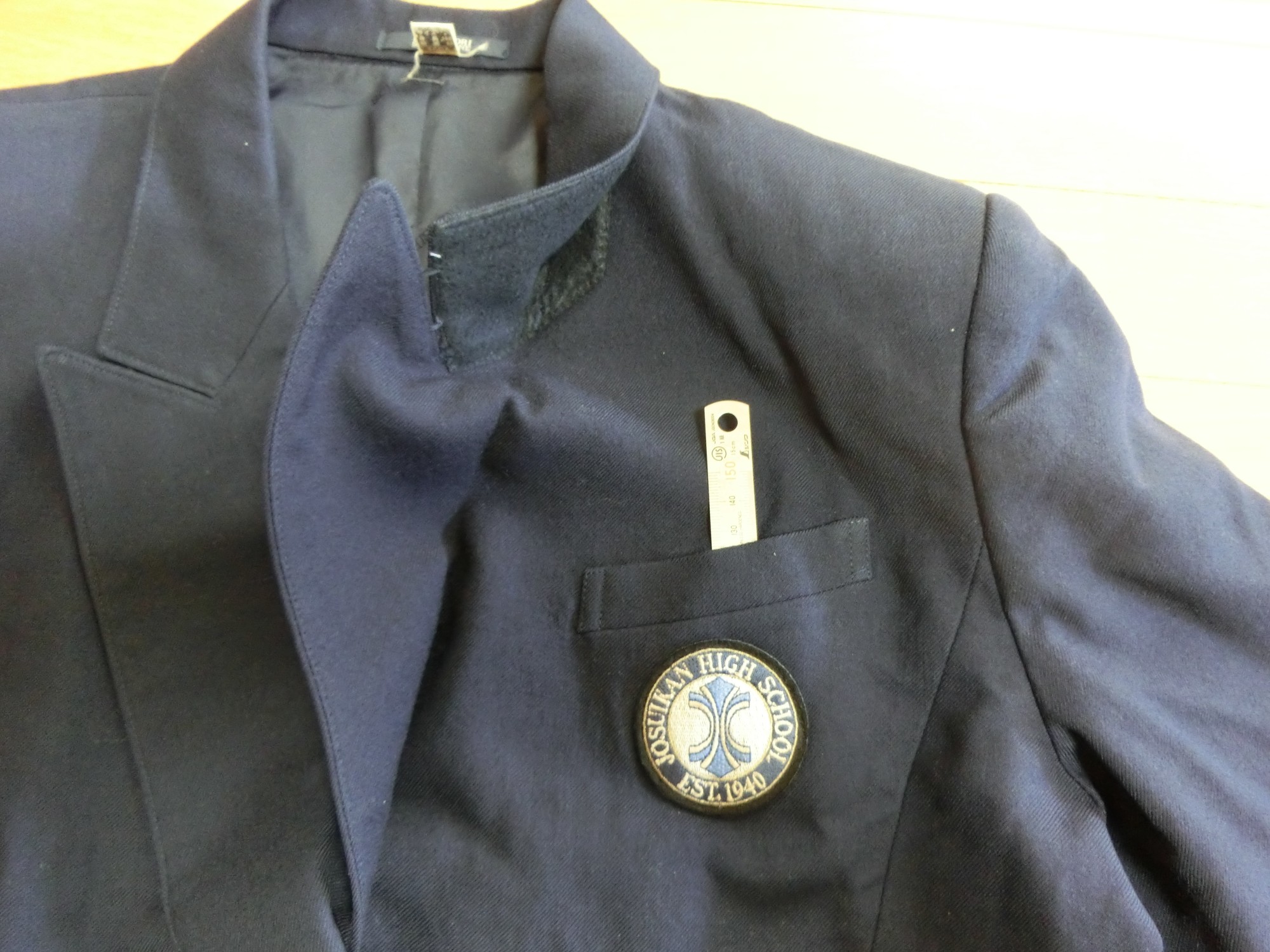 左胸に箱ポケット 校章刺繍が付いています