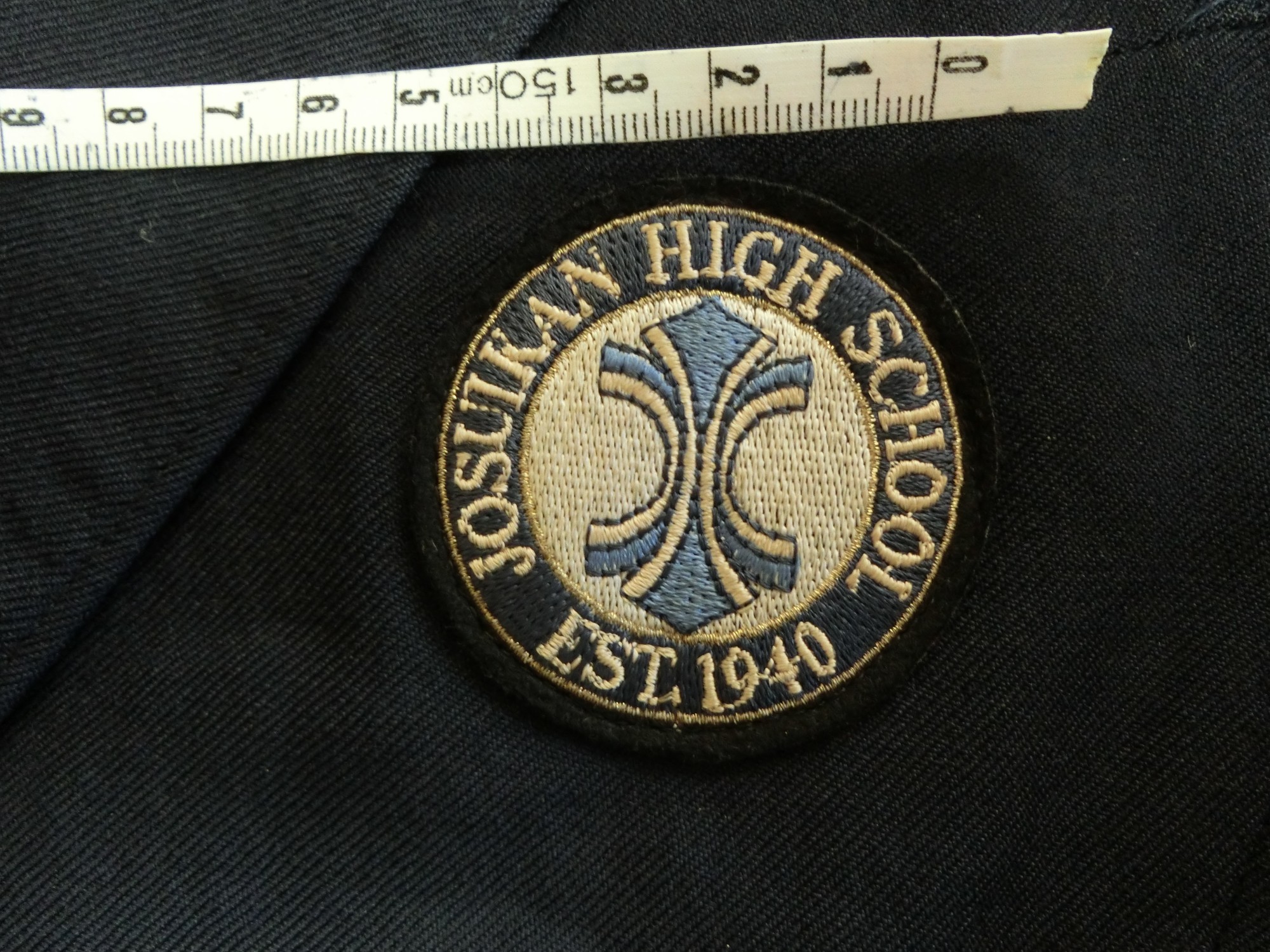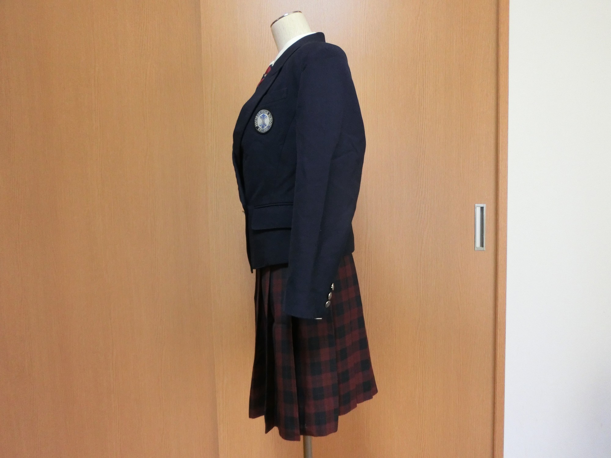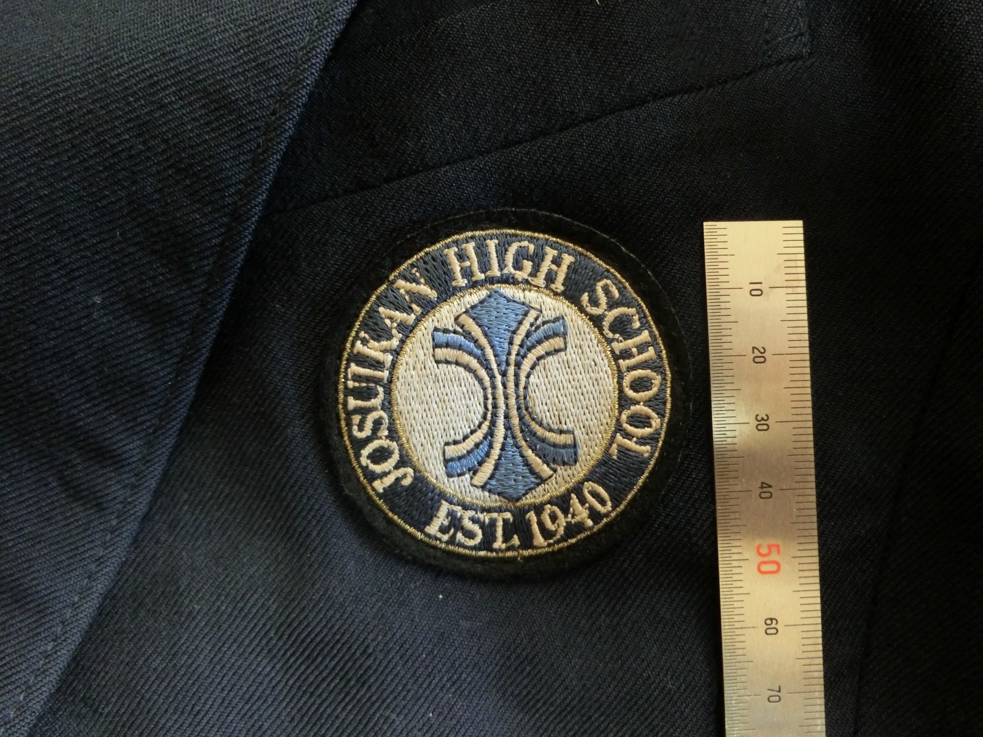 左胸に箱ポケット 校章刺繍が付いています