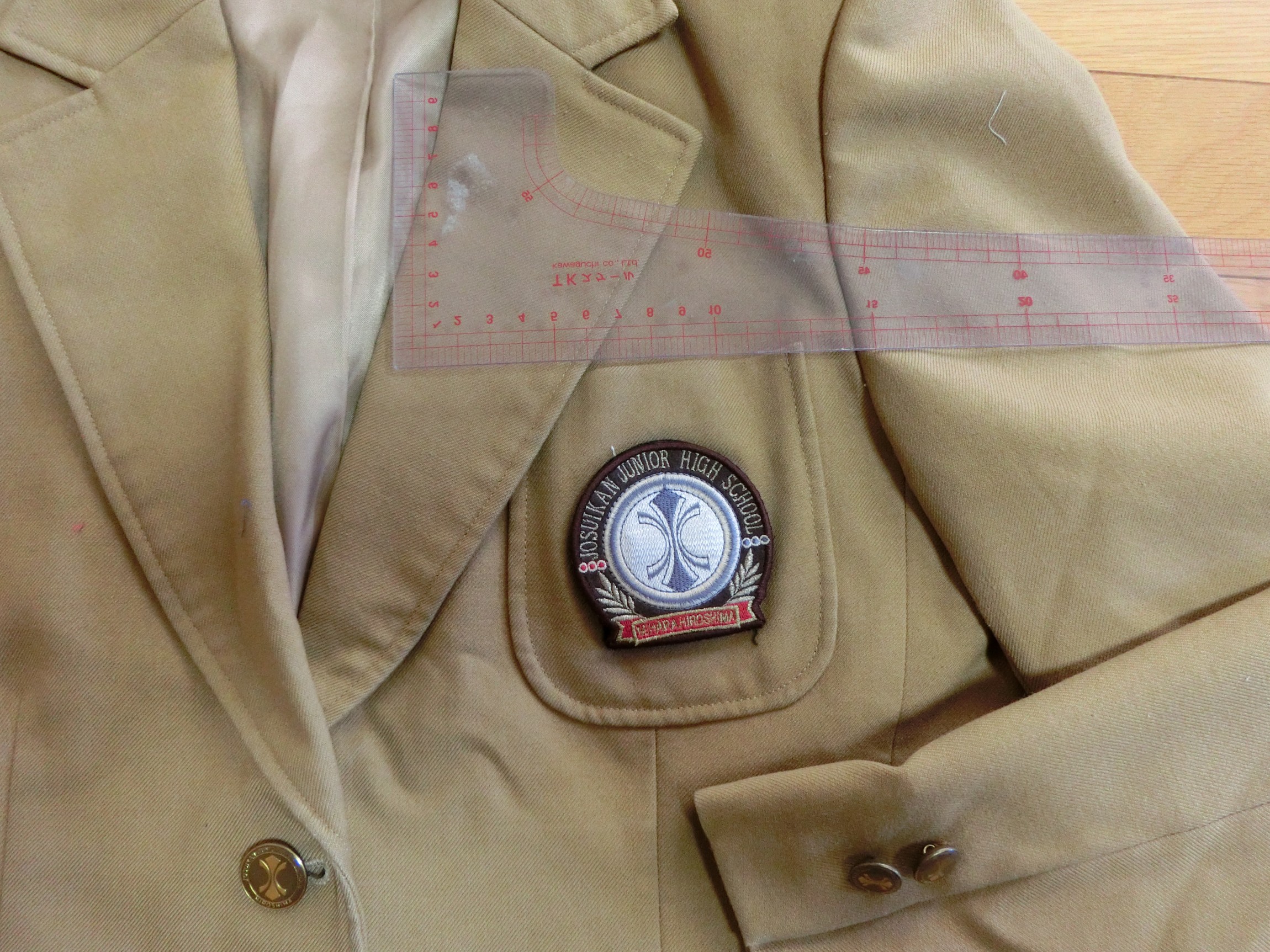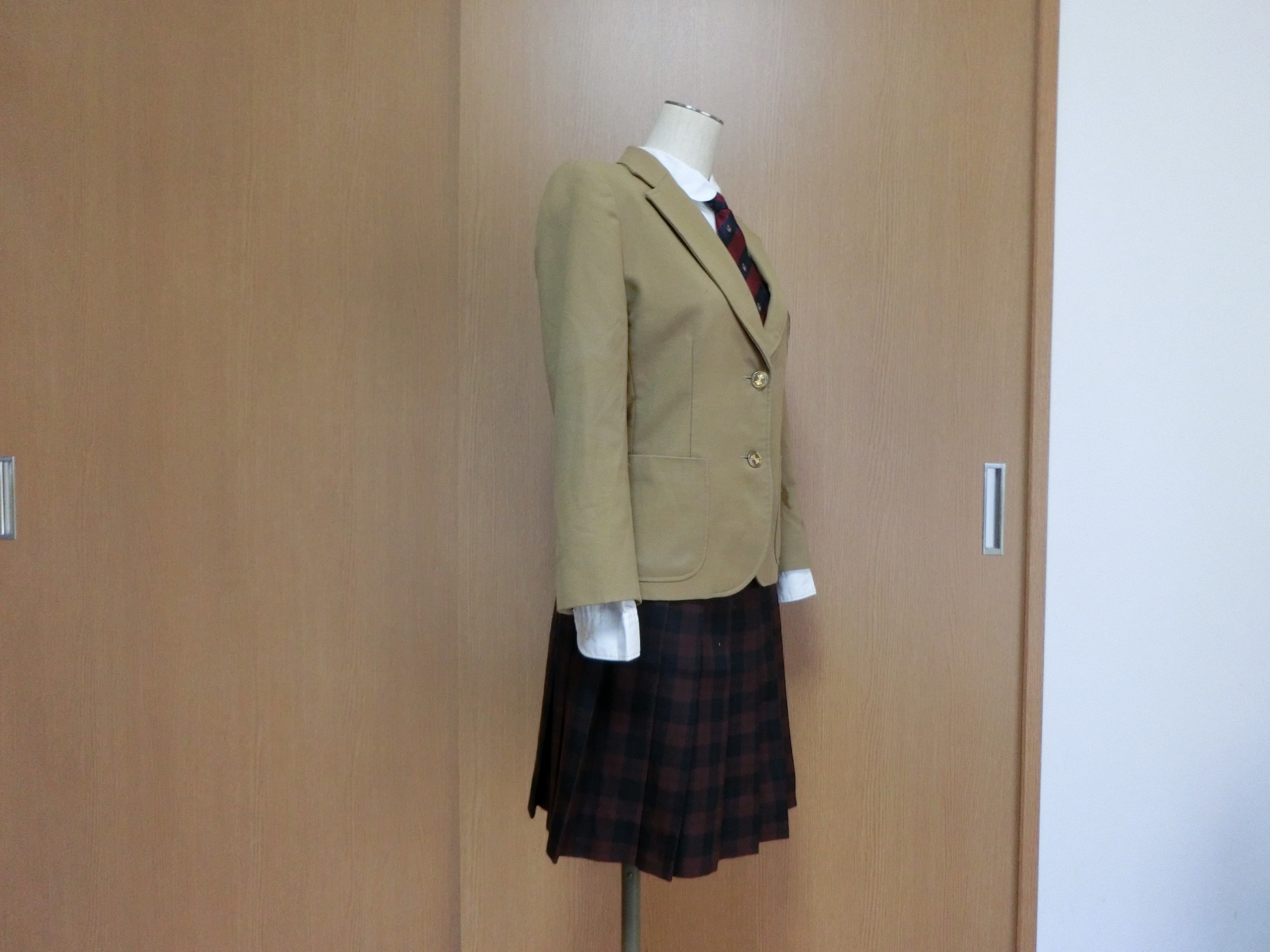 キャメル色のブレザー ネットで画像検索しても詳しいことはわかりませんでした、高校の制服と合わせて撮影しました