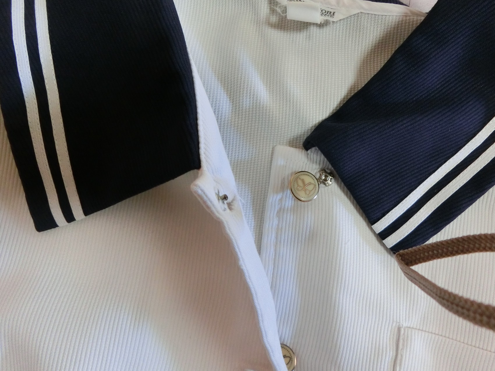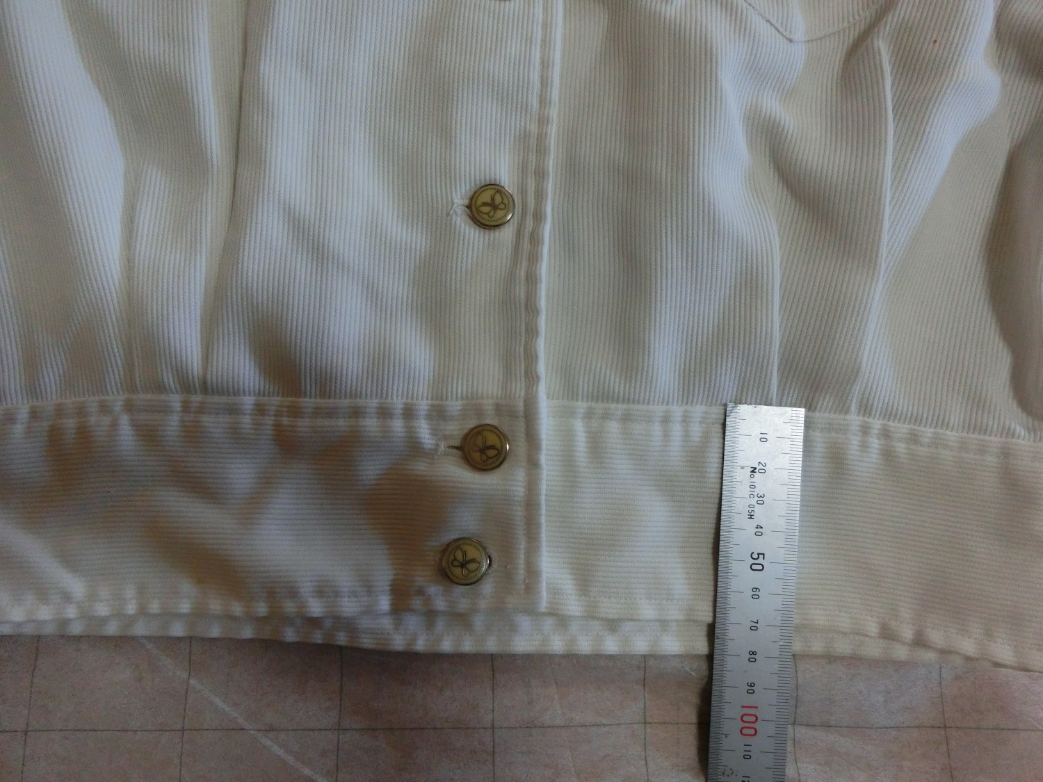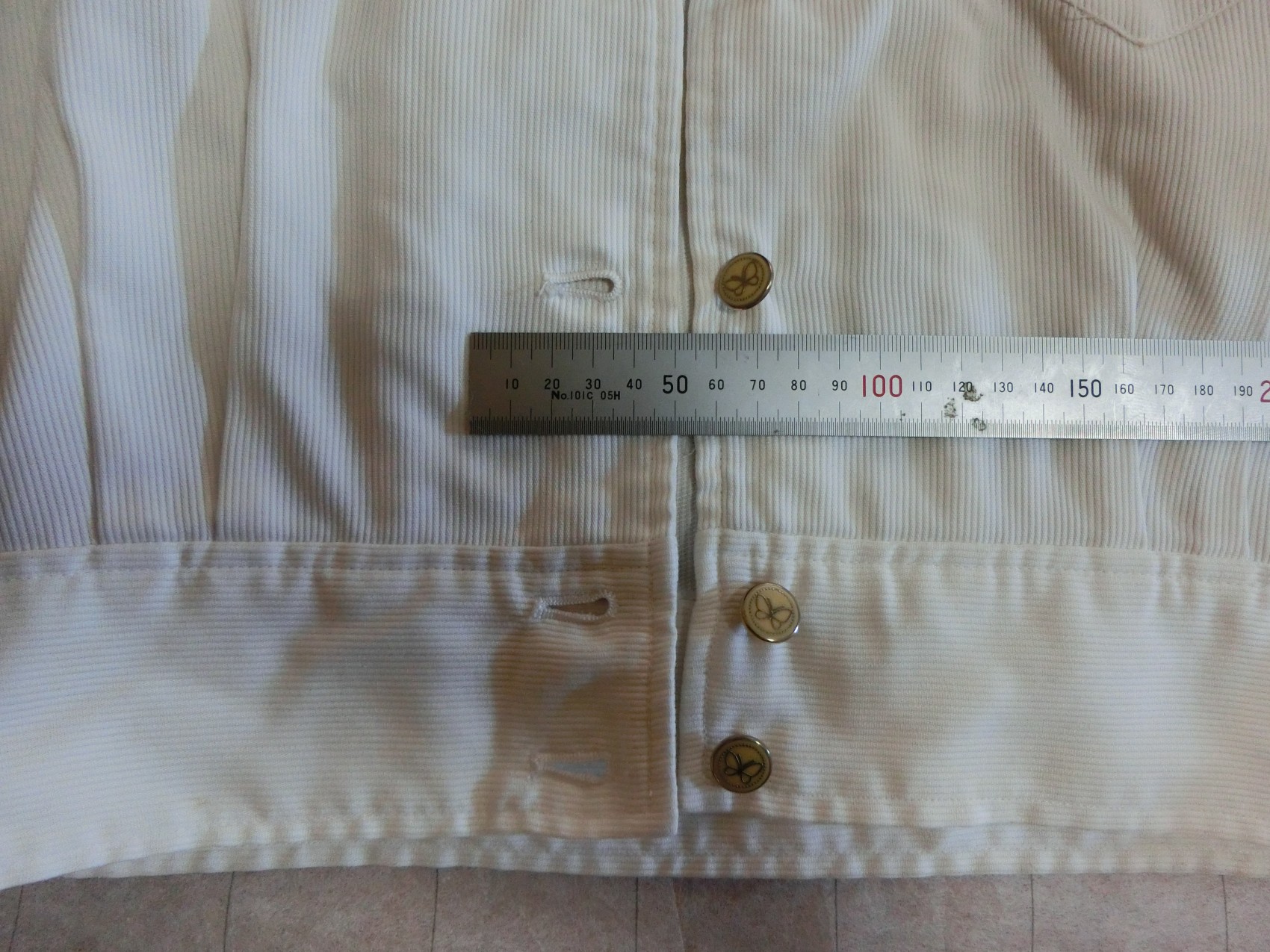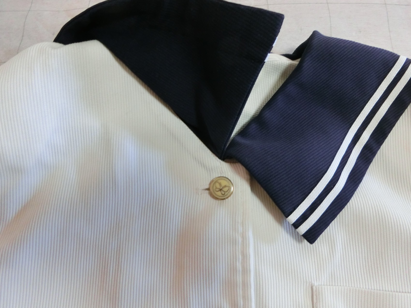 ボタンは蝶のマークがはいった樹脂製