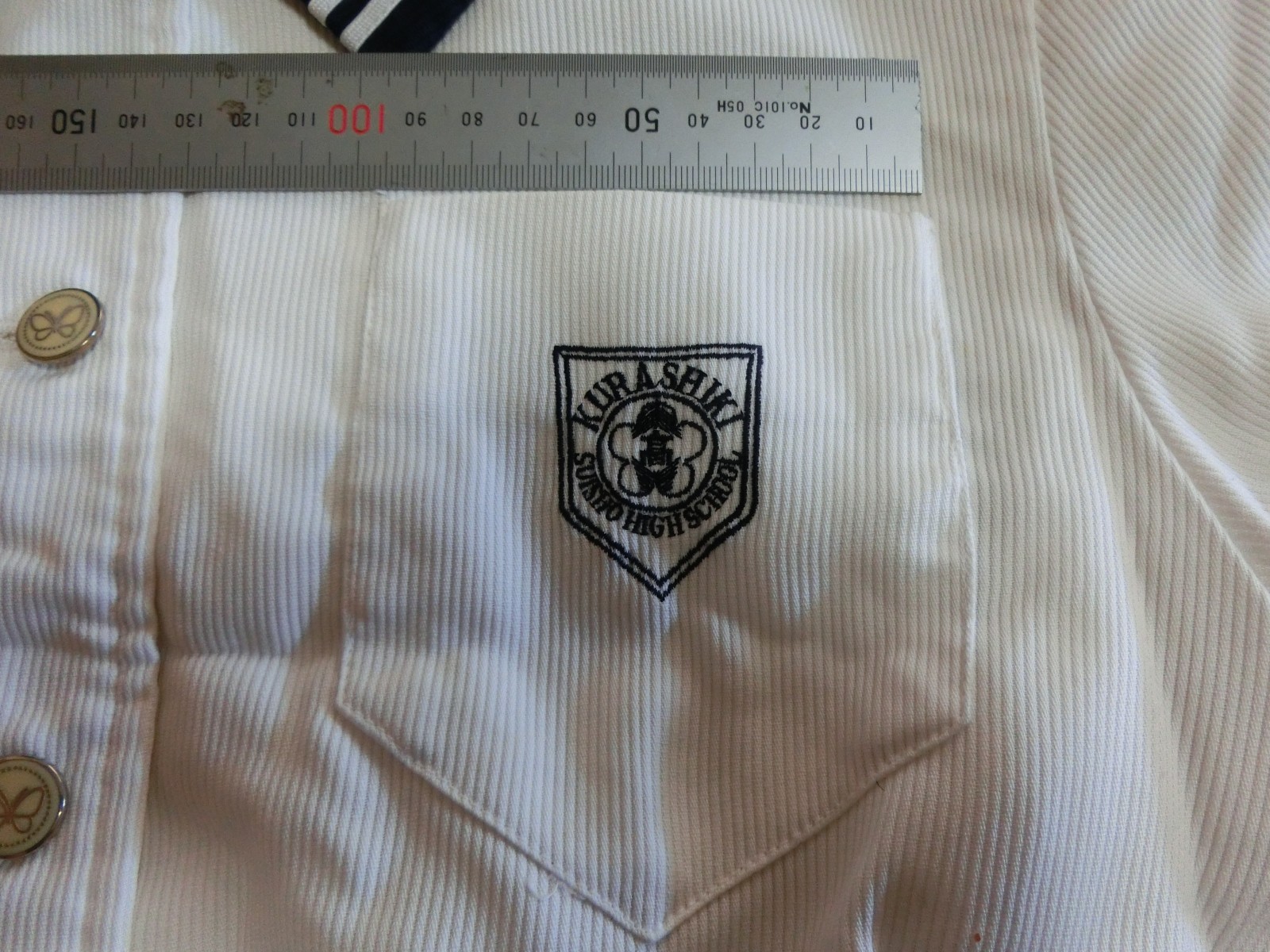 胸ポケットに校章が刺繍されています