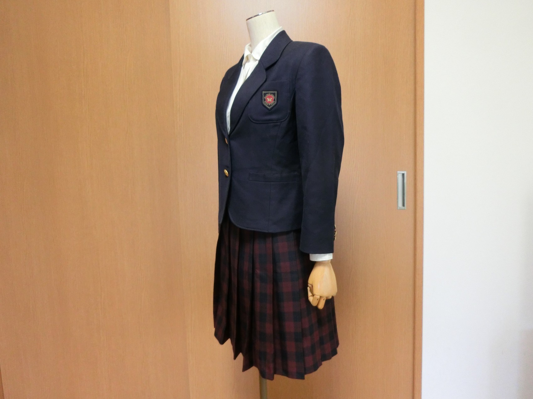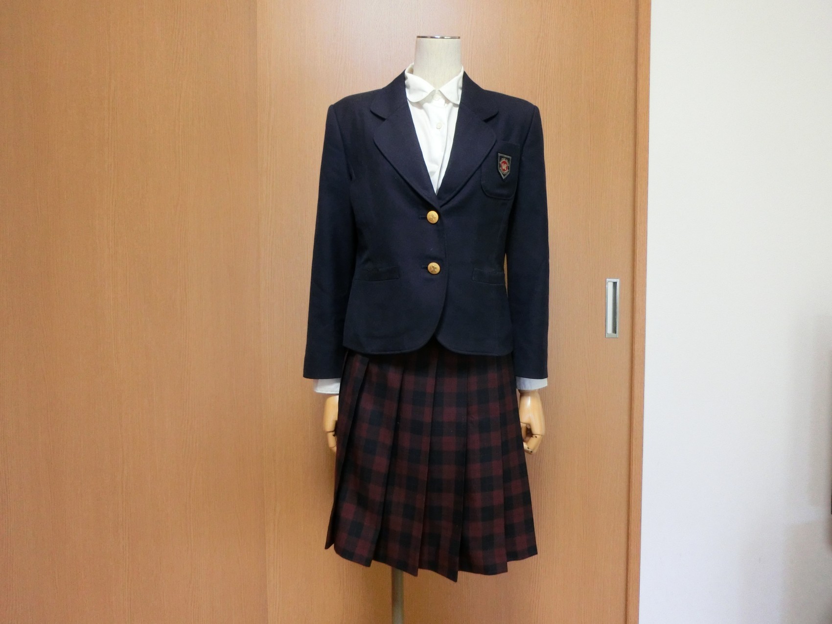 2016年7月楽天オークションにてブレザーとスカートを落札 ブラウスは撮影の為 他校のものを使用、スカートに記入された名前がブレザーと違うので松前西のものと断定できません