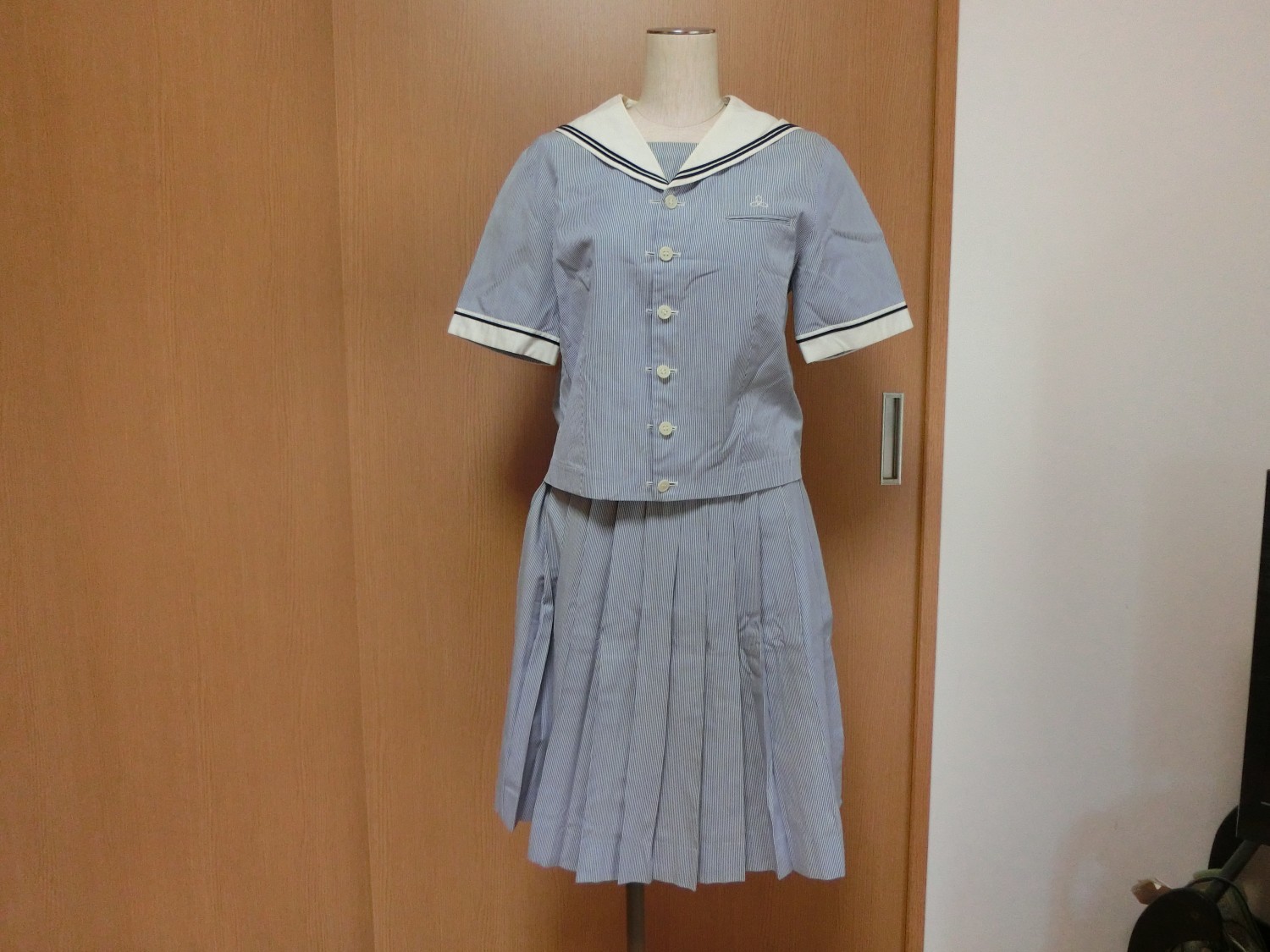 身ごろは水色と白のストライプのコードレーン