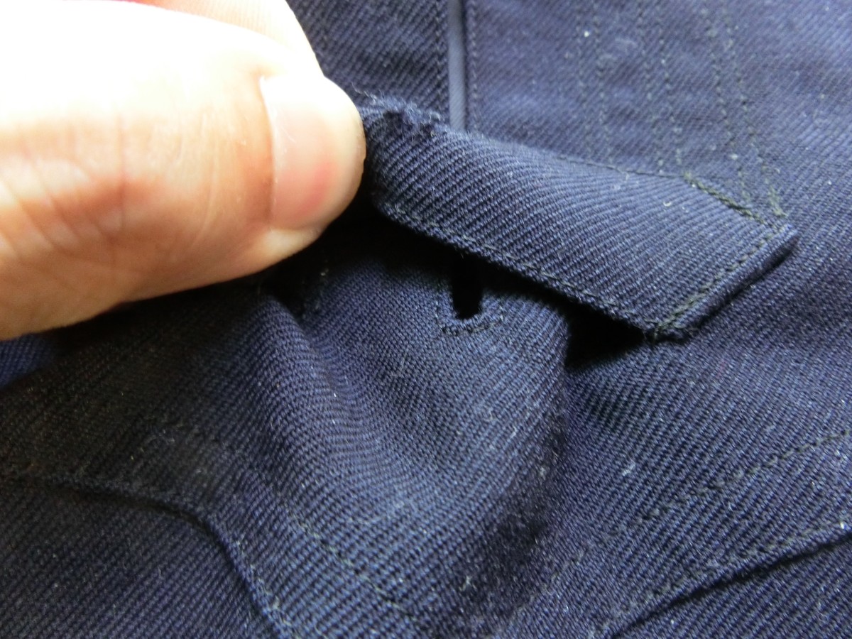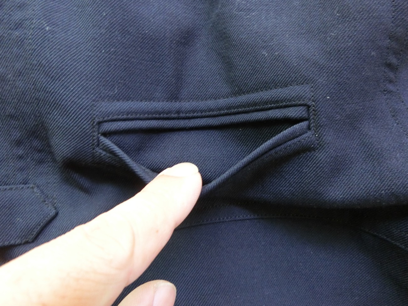 両玉縁ポケット 補強の為か2重にステッチが入っています 袋布も裏地でなく表地です
