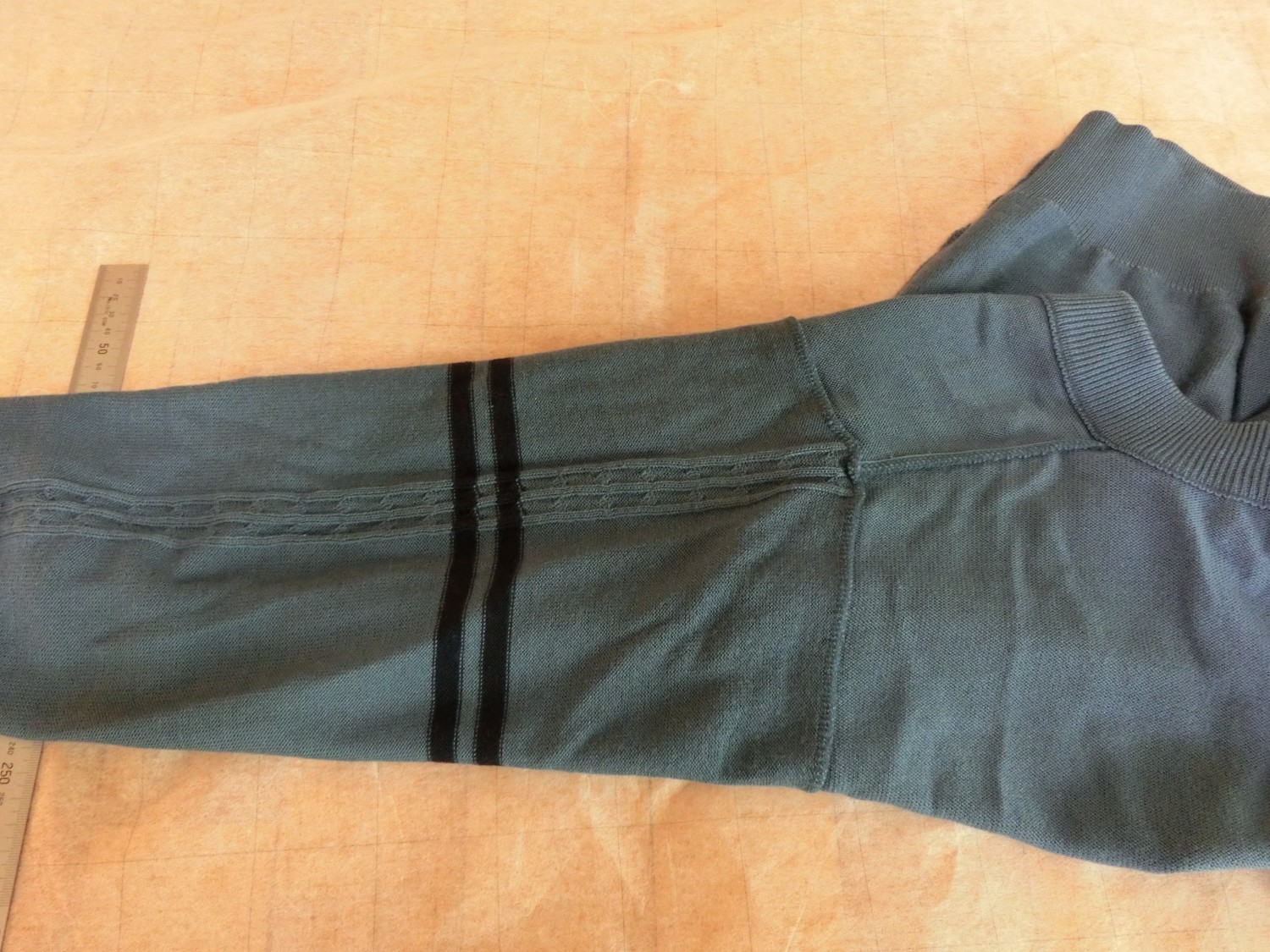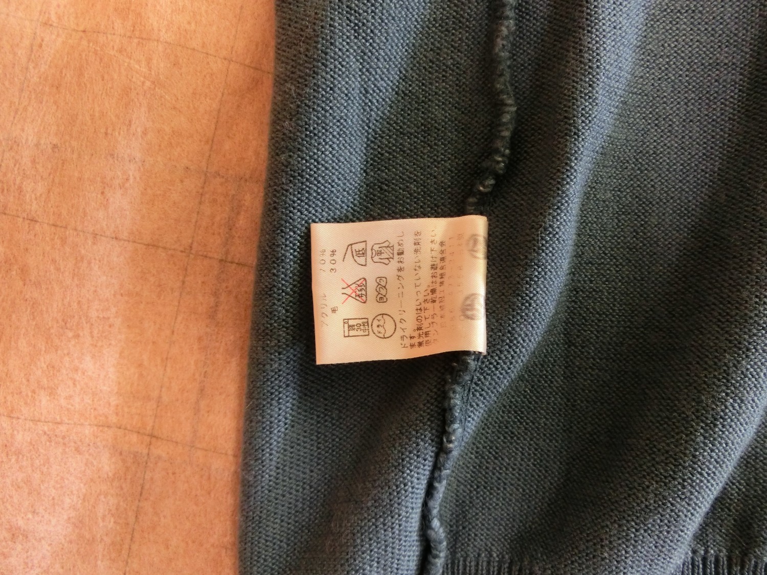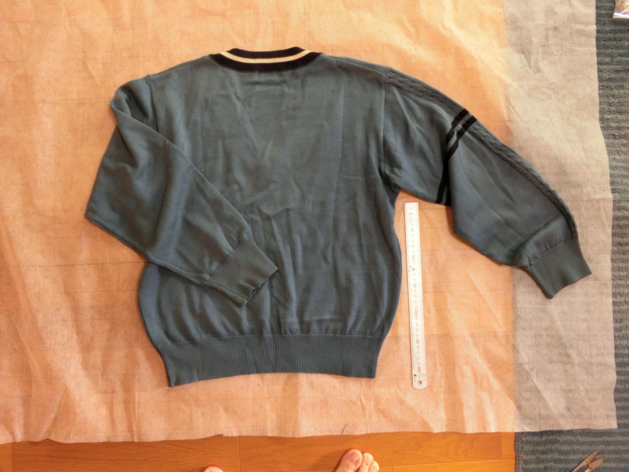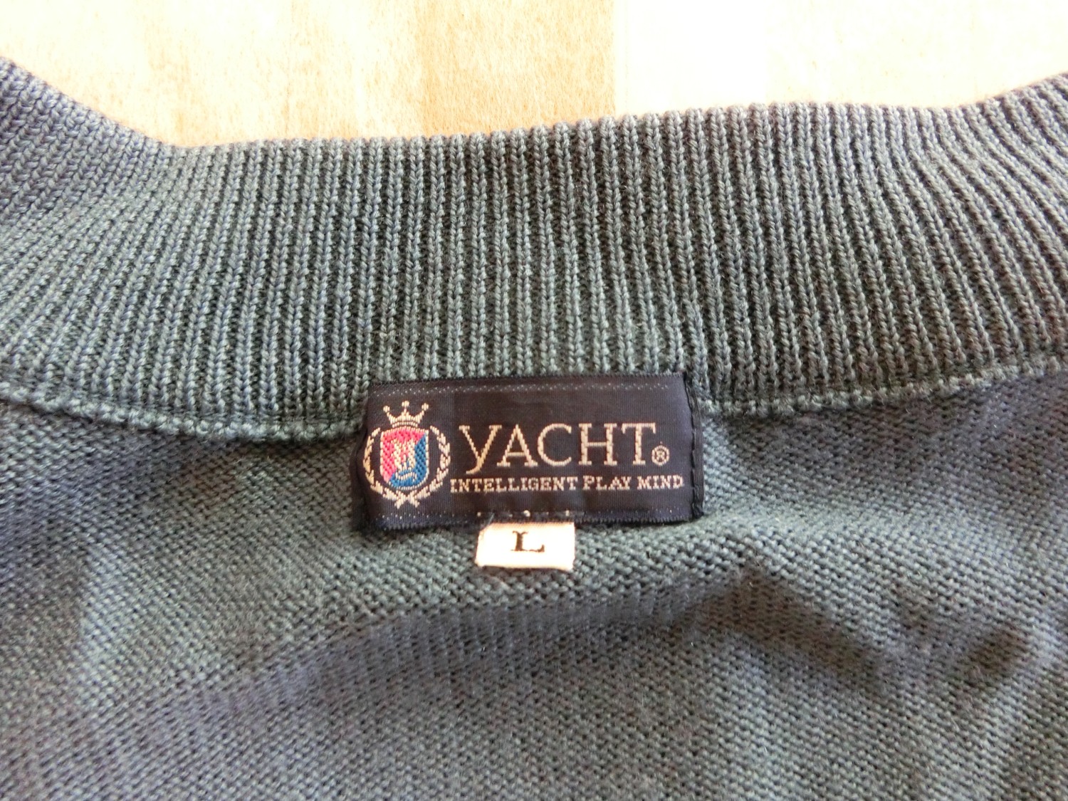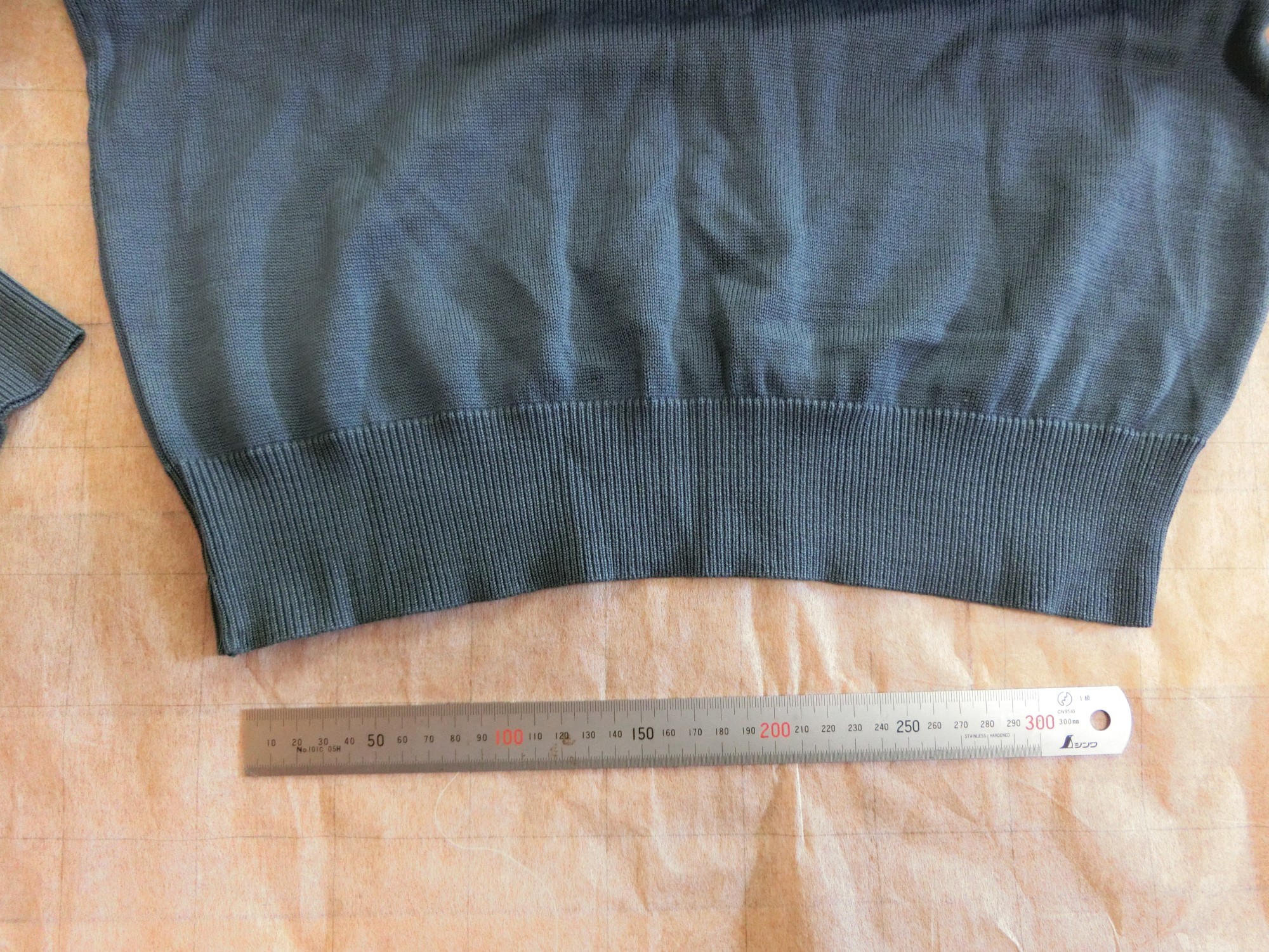 色はブレザーと同じブルー ネックラインが黒で白いラインが1本入ってます