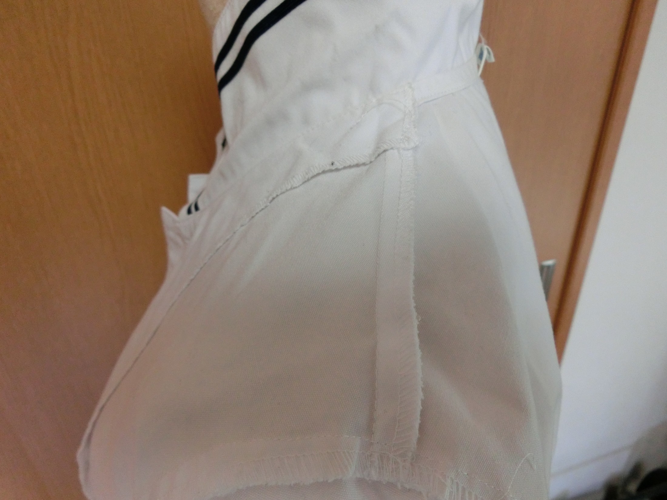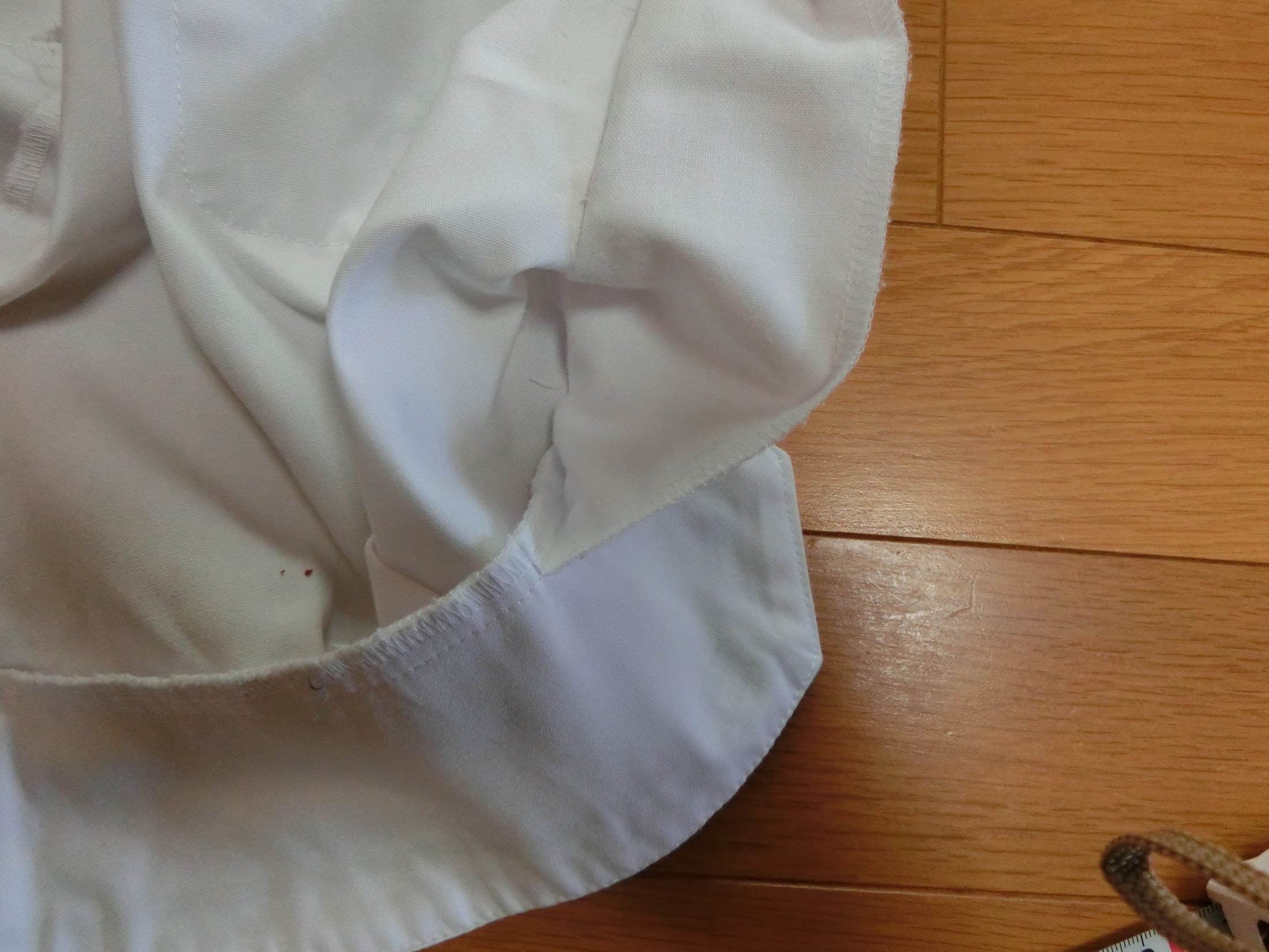 身ごろと衿の縫い代をバイアステープで巻くタイプです