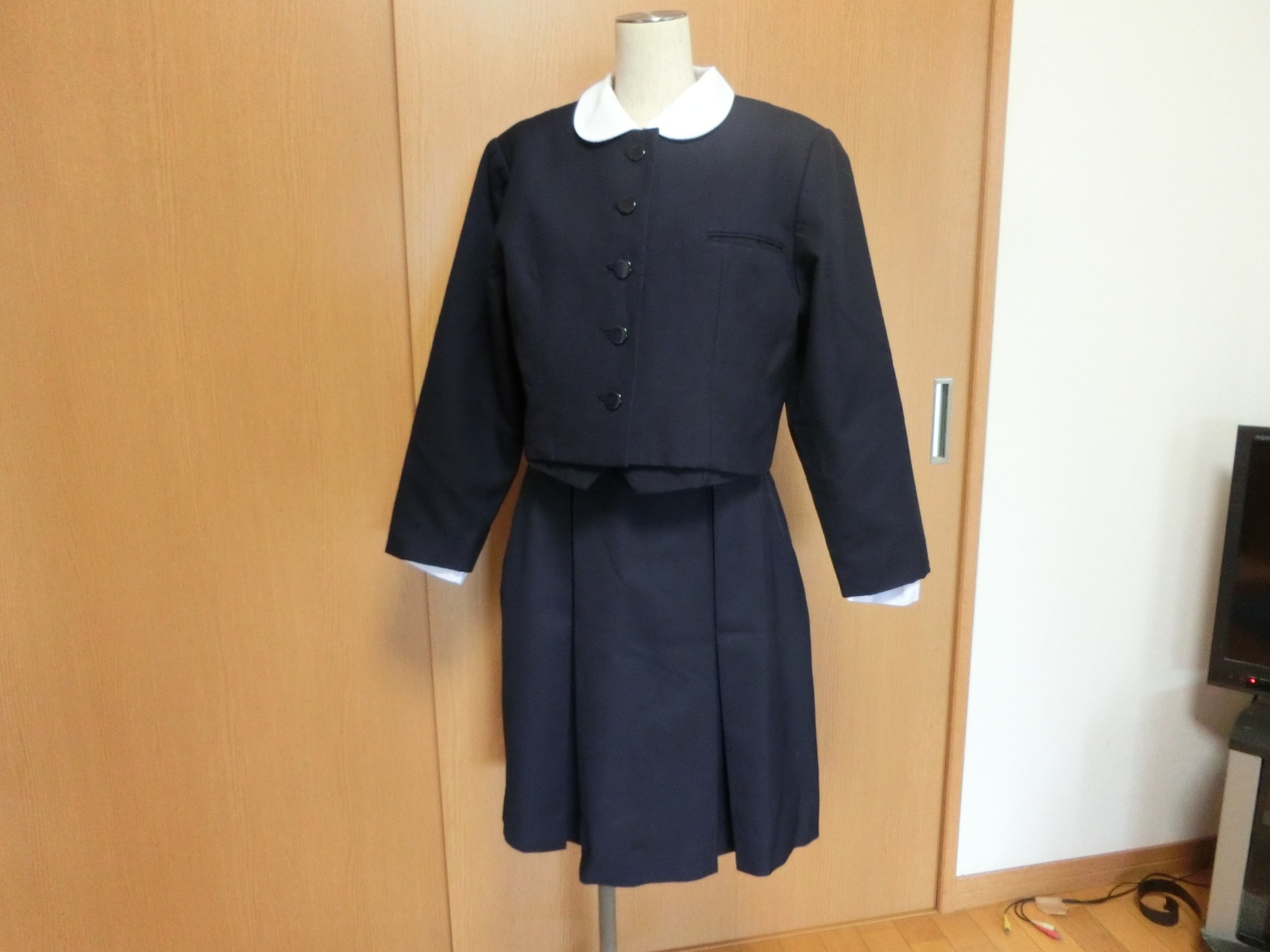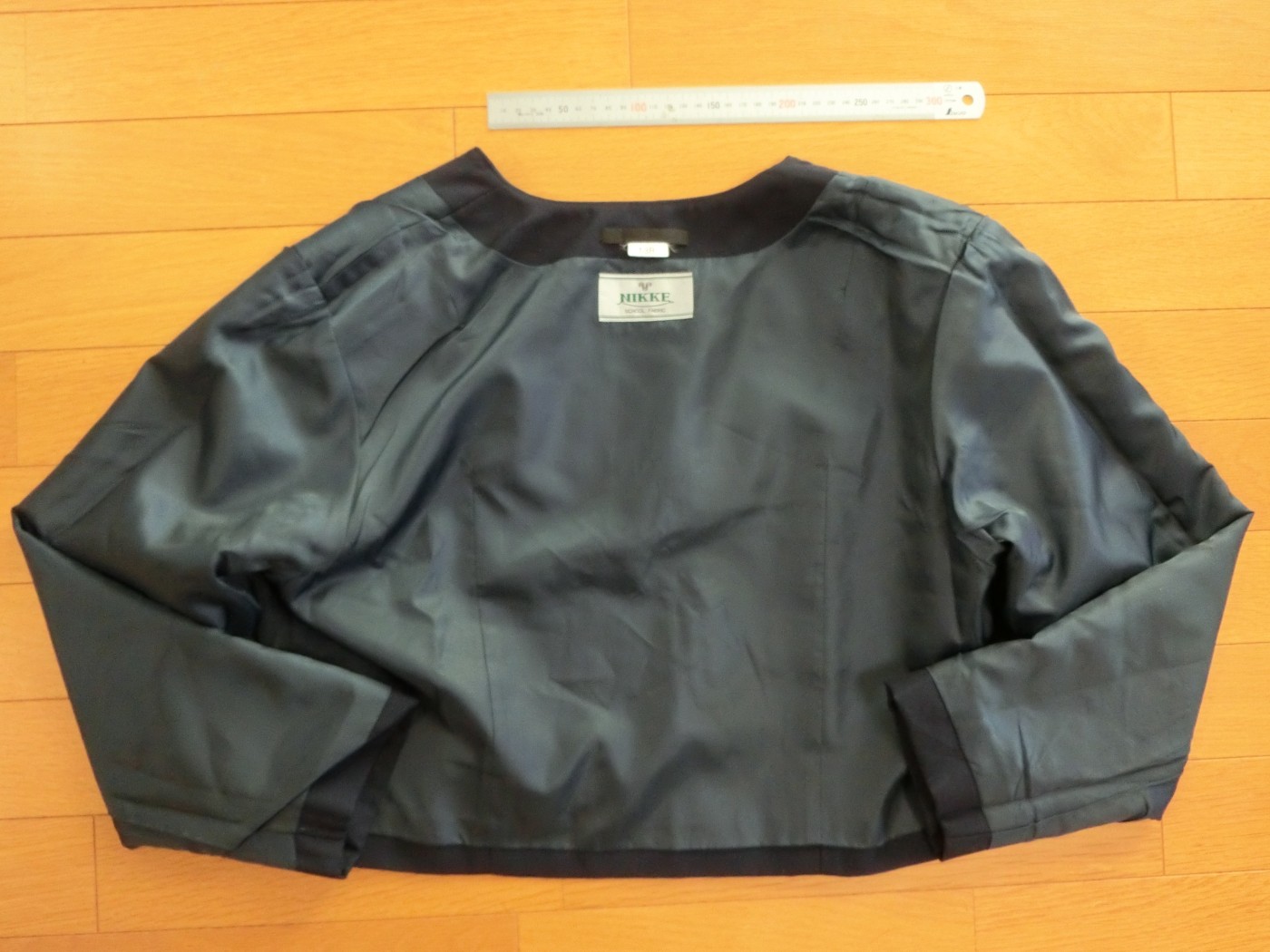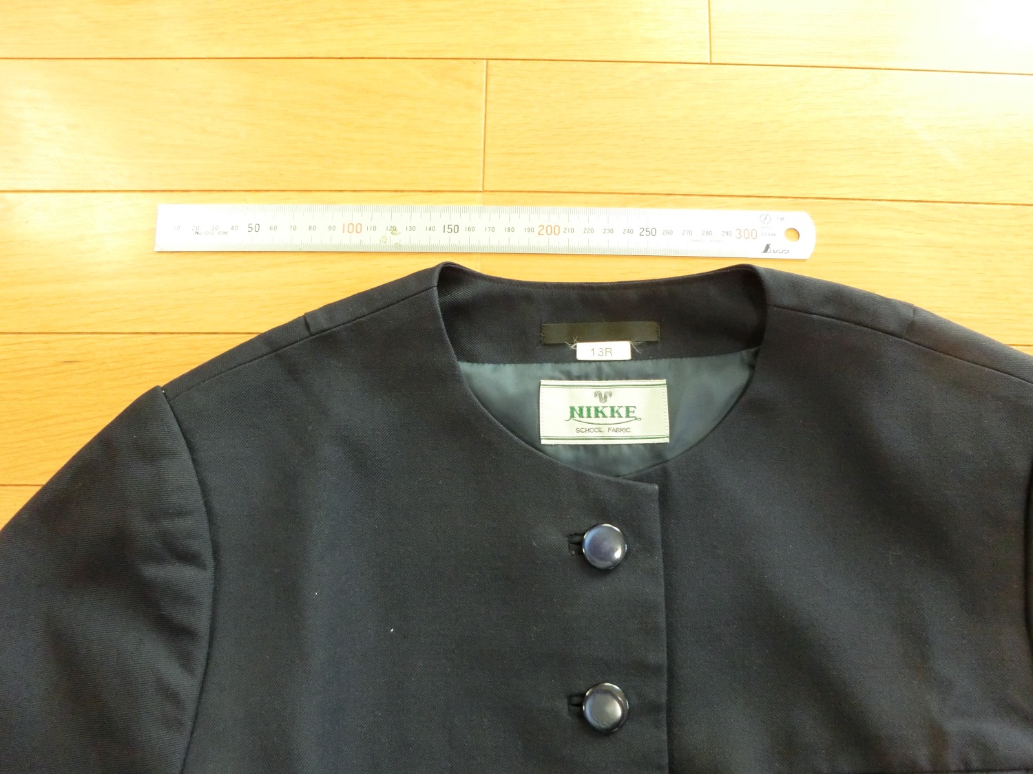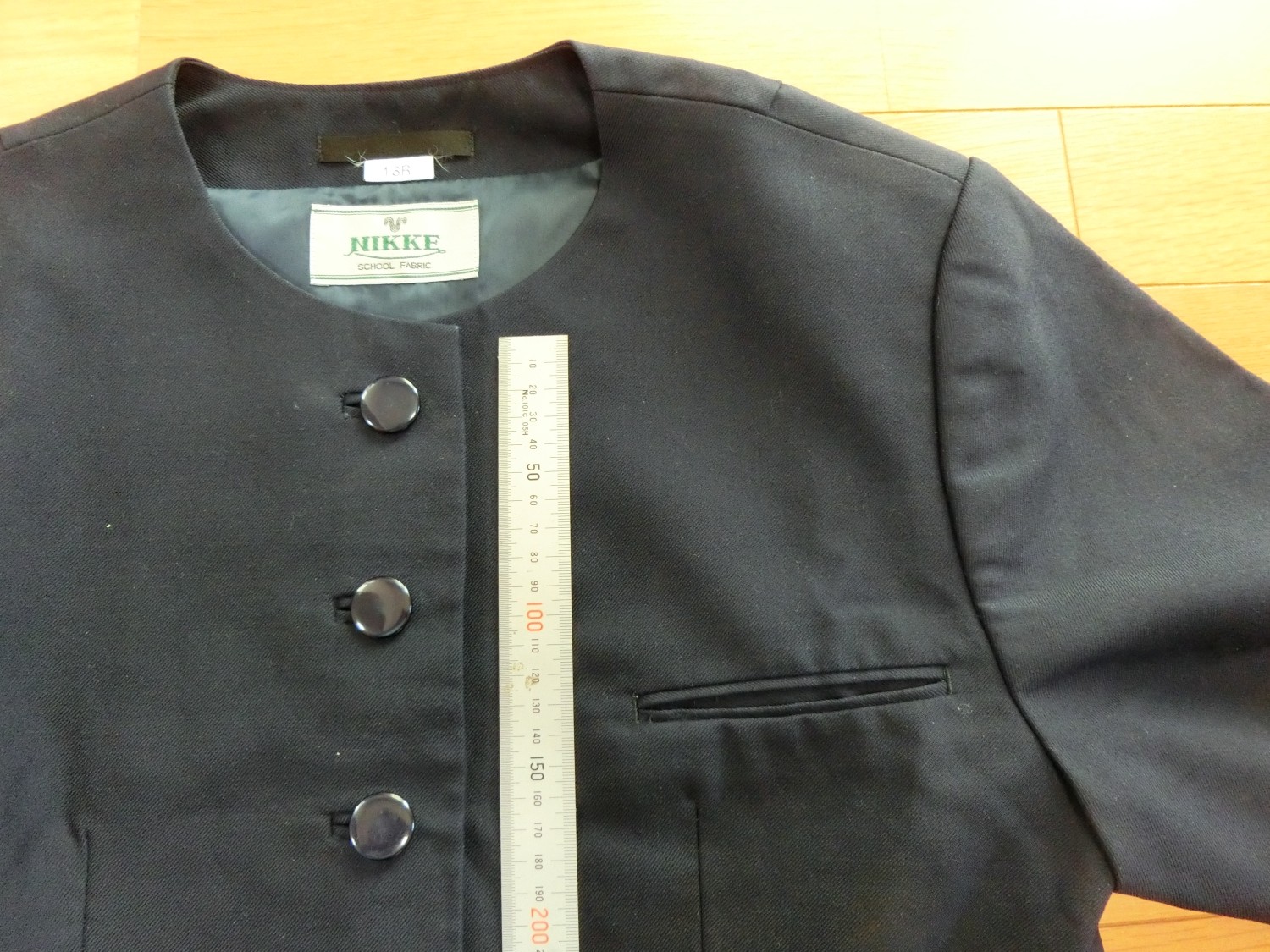 種類でいうと襟なし丸衿ぐり 前あきがボタンどめのカーディガンジャケット ボタンホールが玉縁で、袖がブレザーで一般的な2枚袖でなく1枚袖です