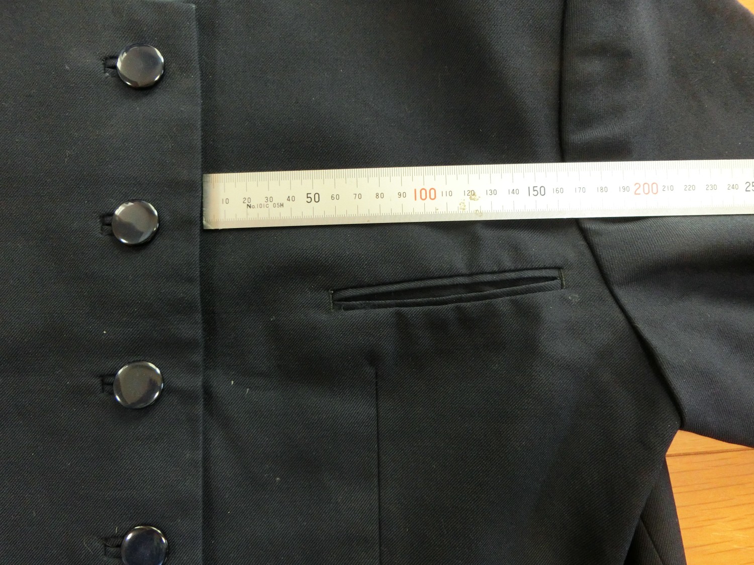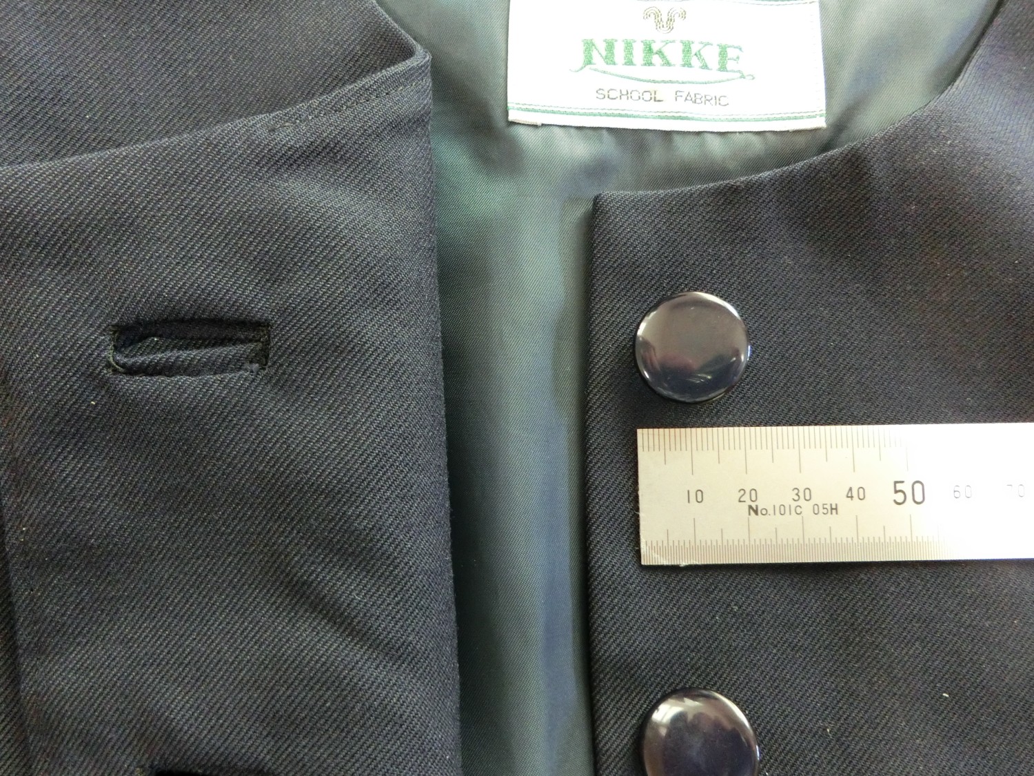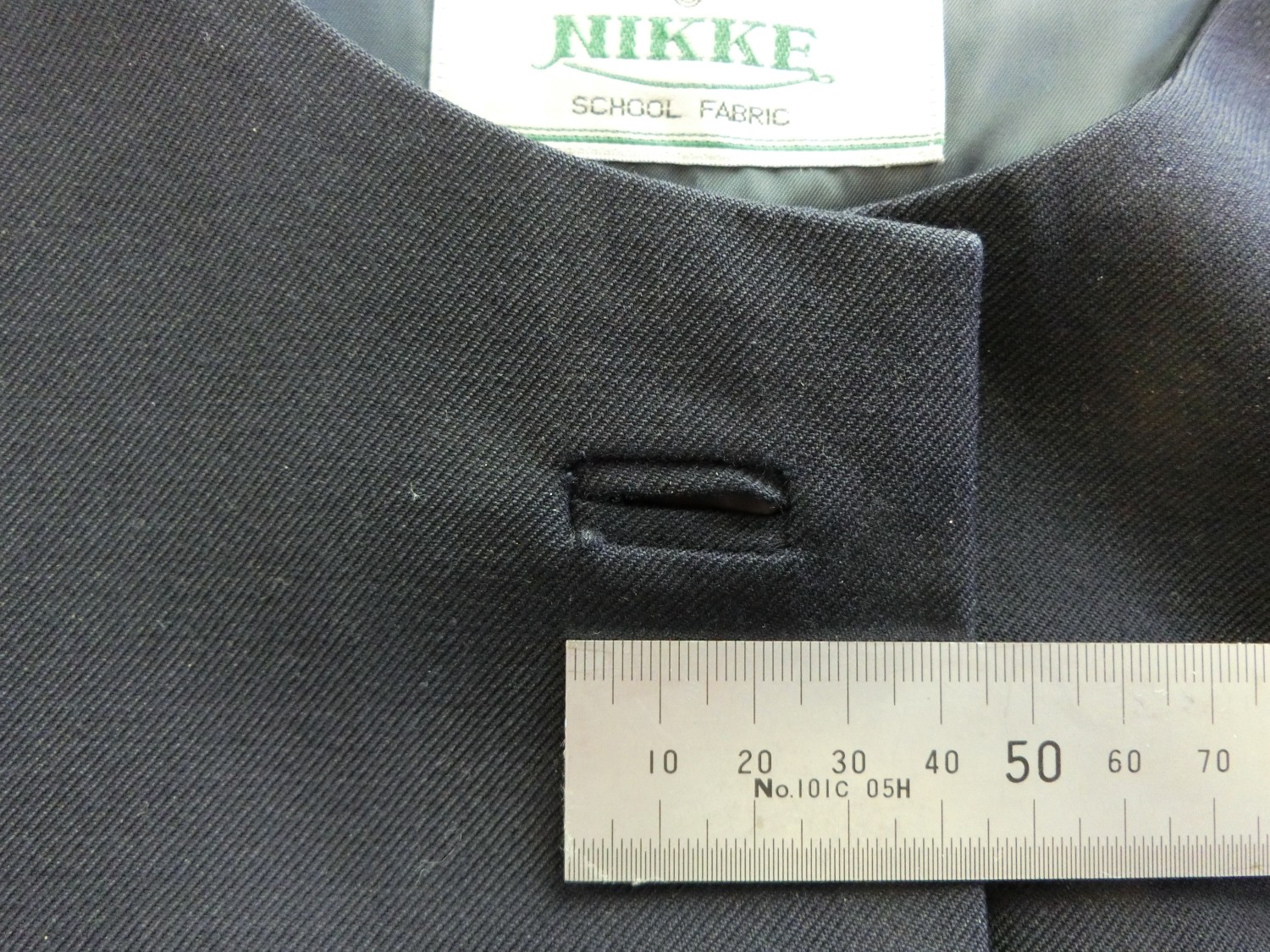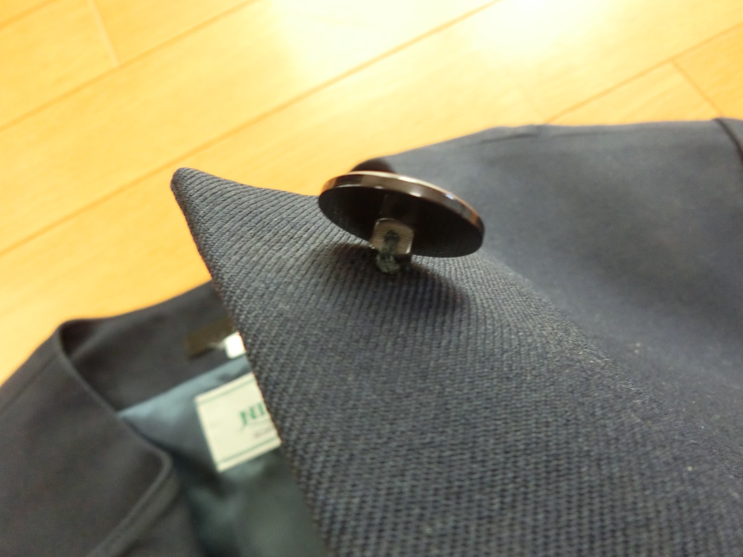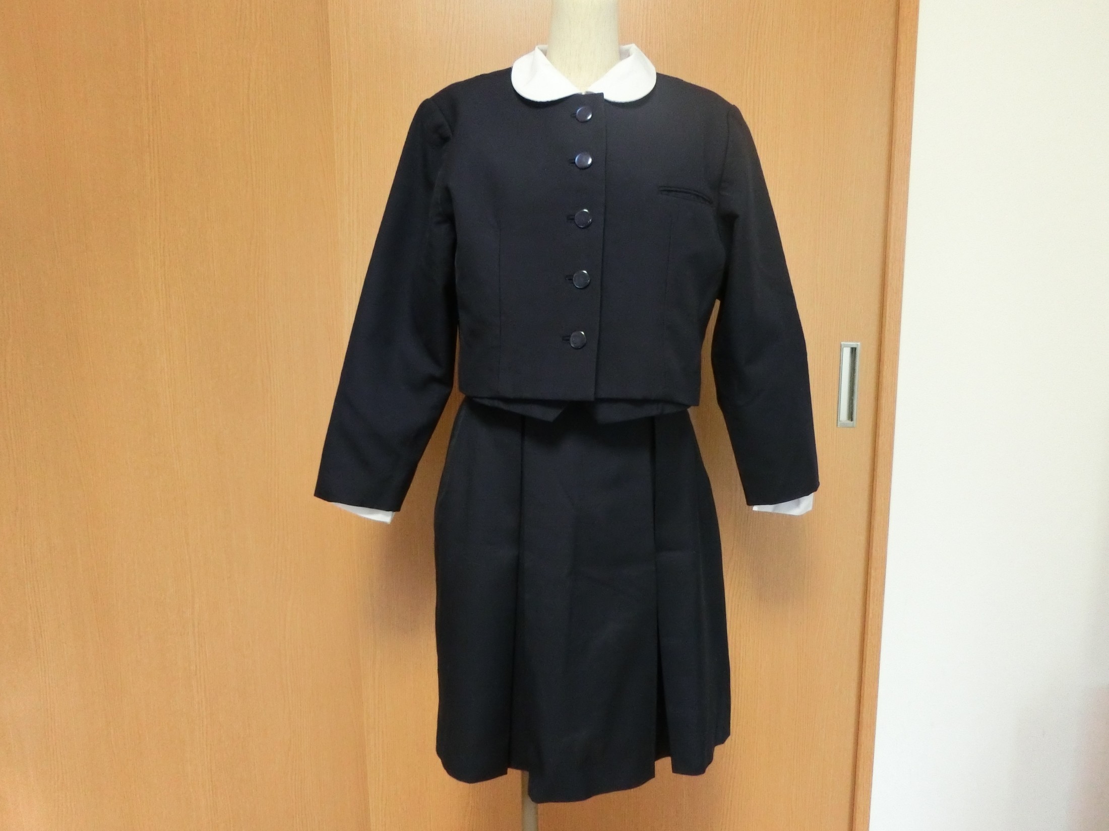 種類でいうと襟なし丸衿ぐり 前あきがボタンどめのカーディガンジャケット ボタンホールが玉縁で、袖がブレザーで一般的な2枚袖でなく1枚袖です