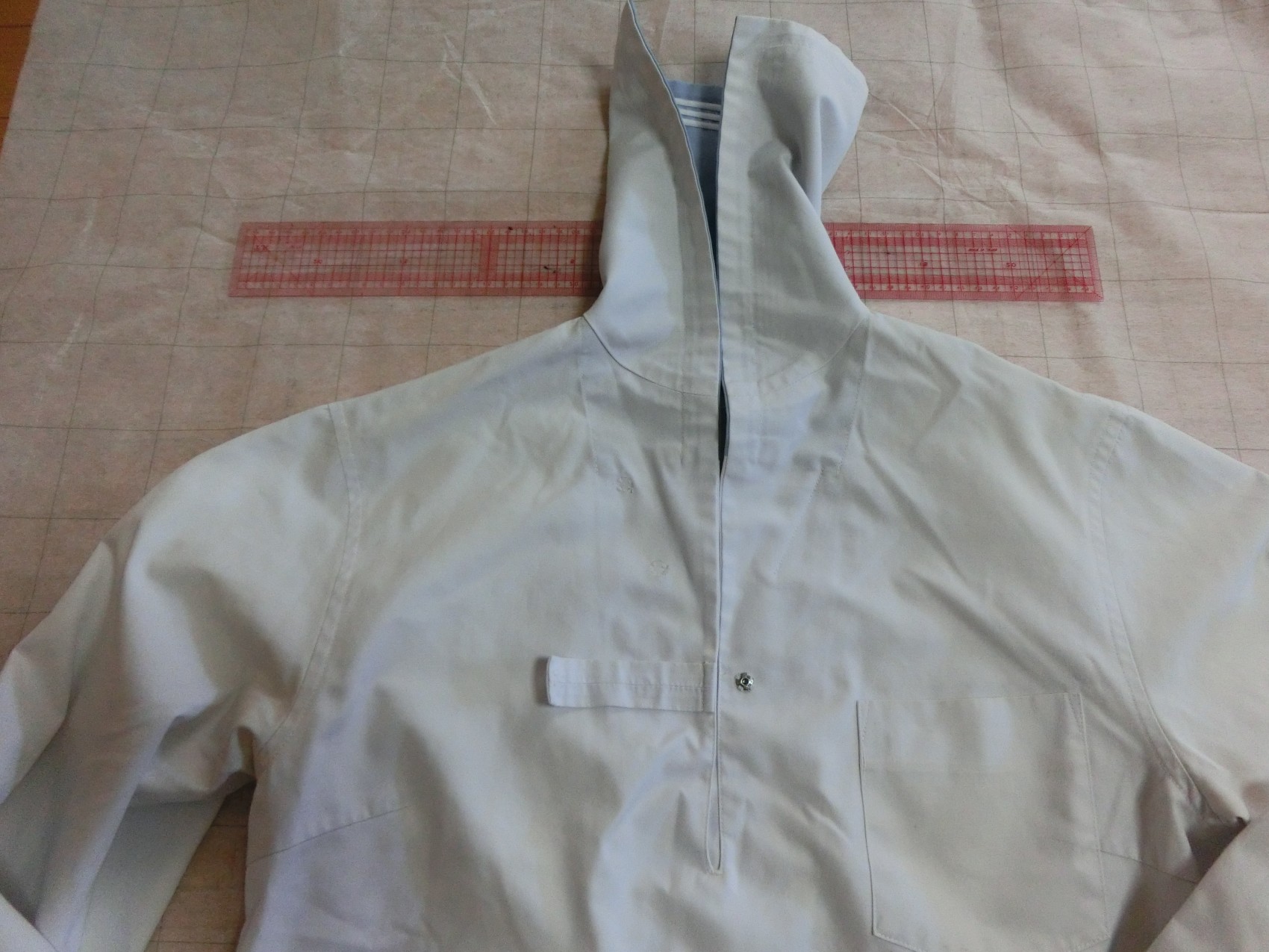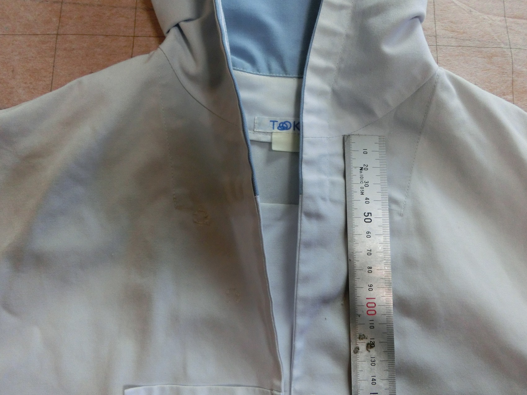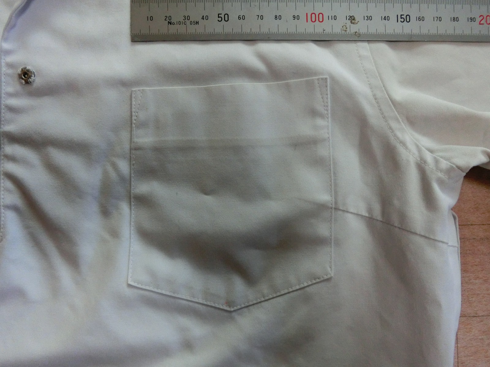 左胸にパッチポケット スカーフ留めにウールマークみたいな刺繍が入ってます