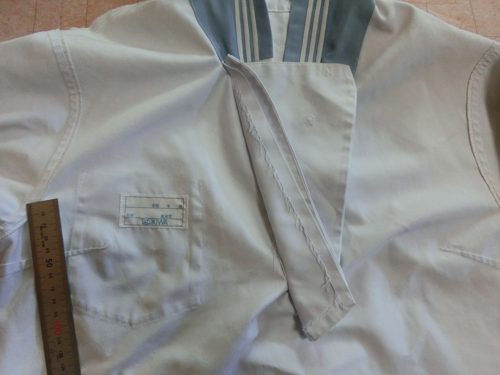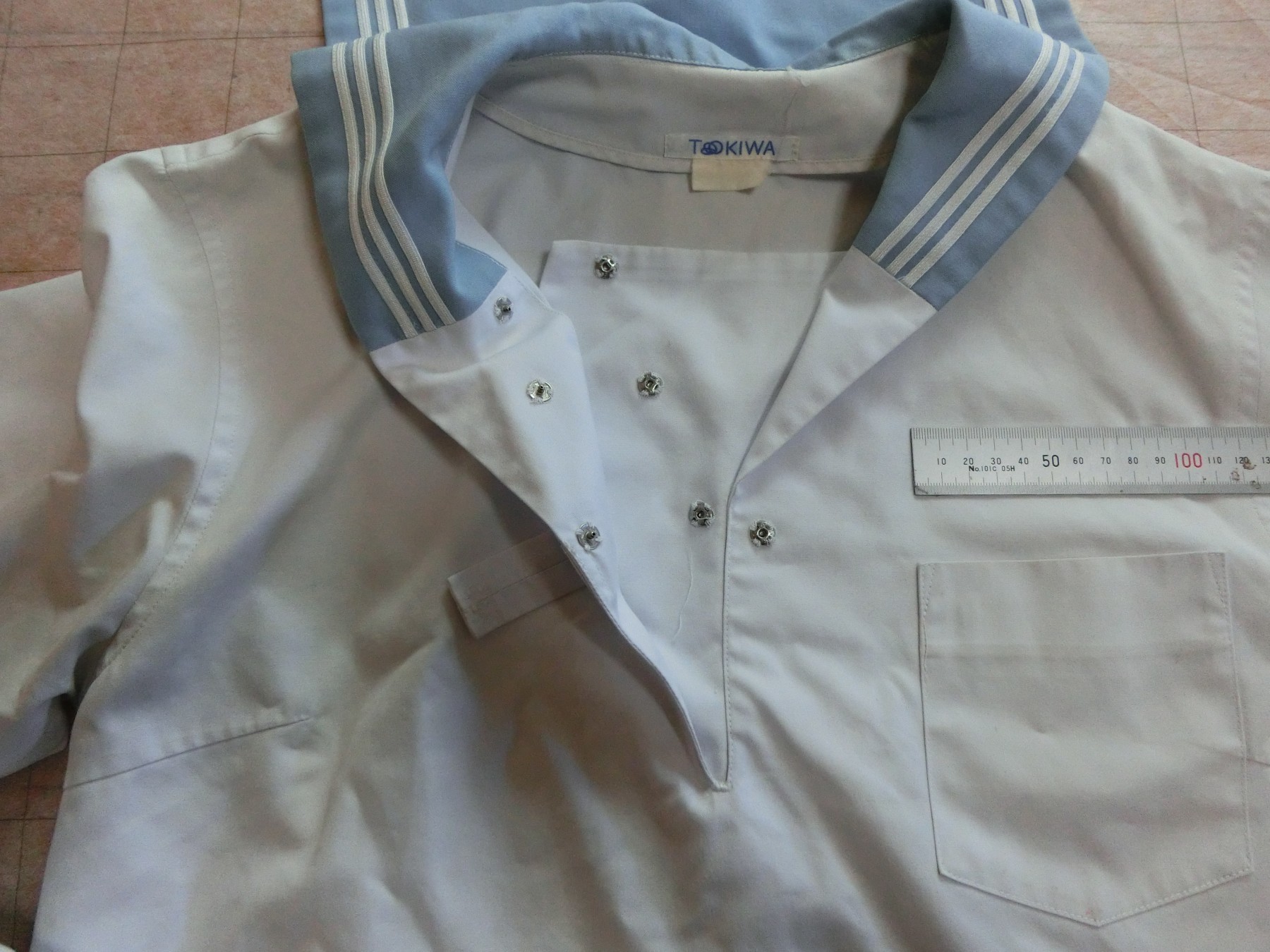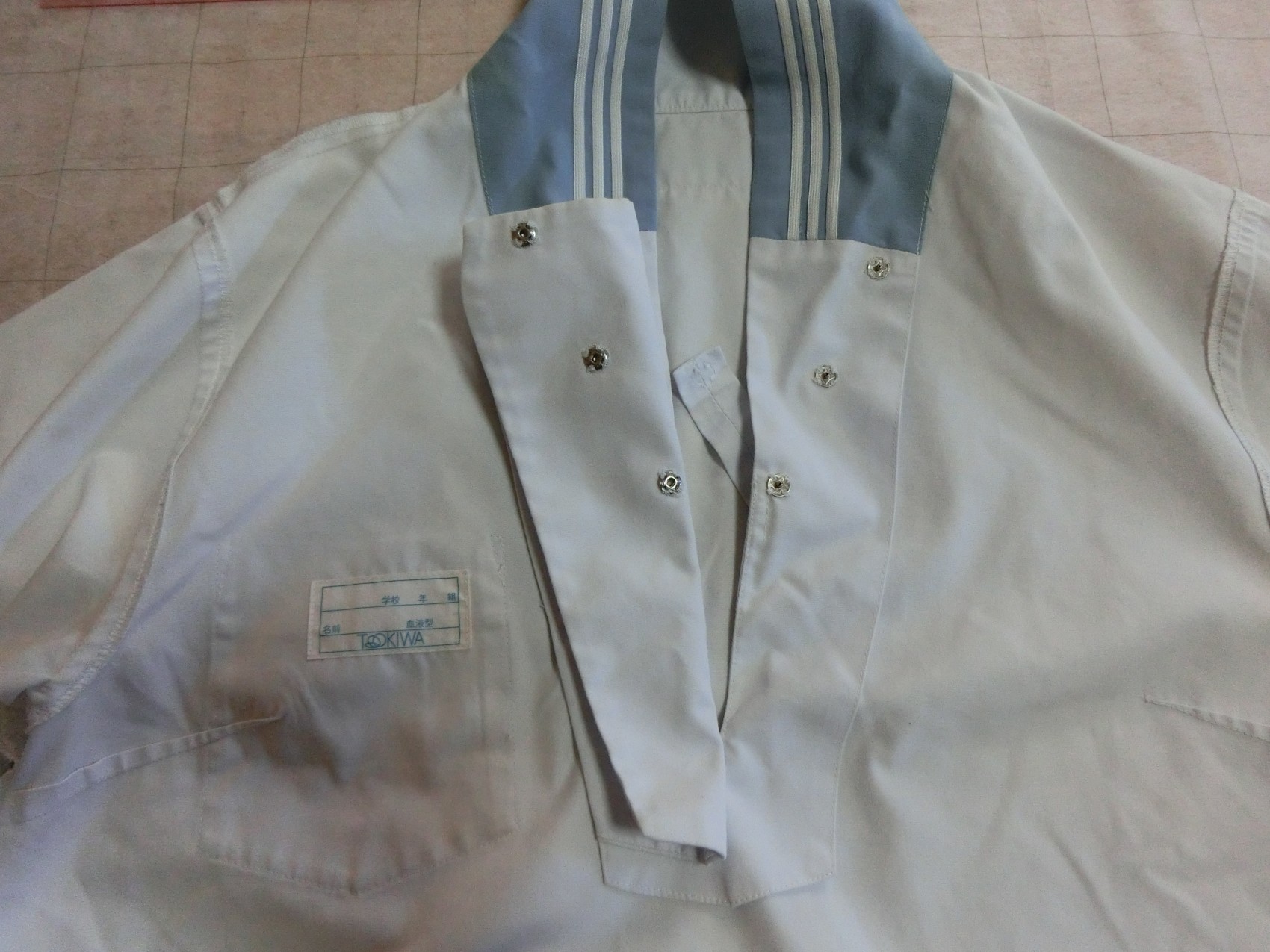 水色、白3本ラインの切り替えカラー 胸当てあり