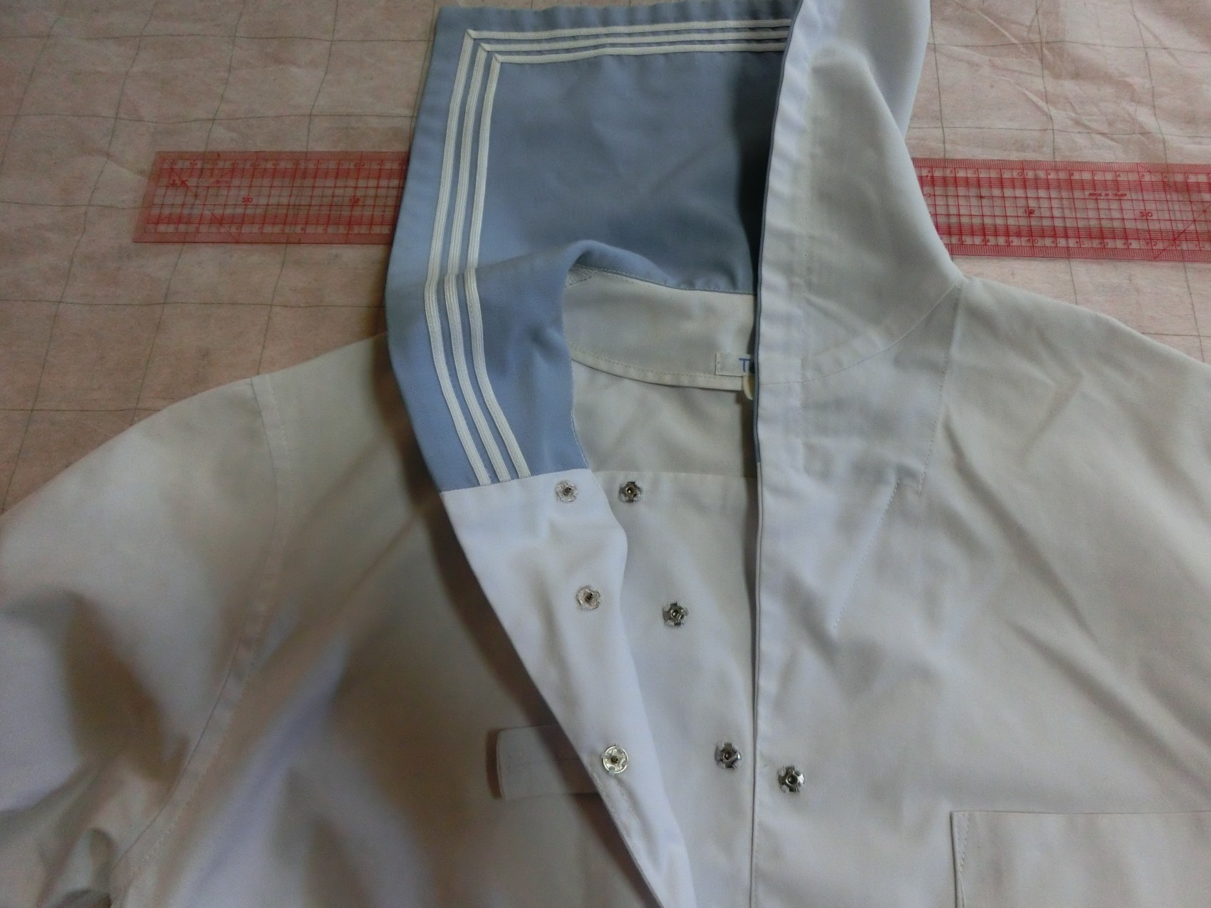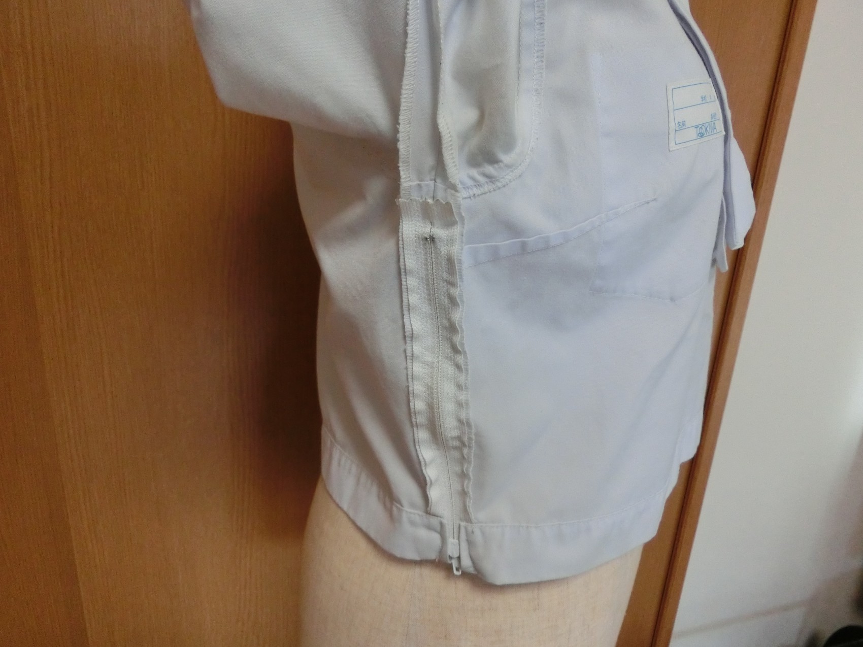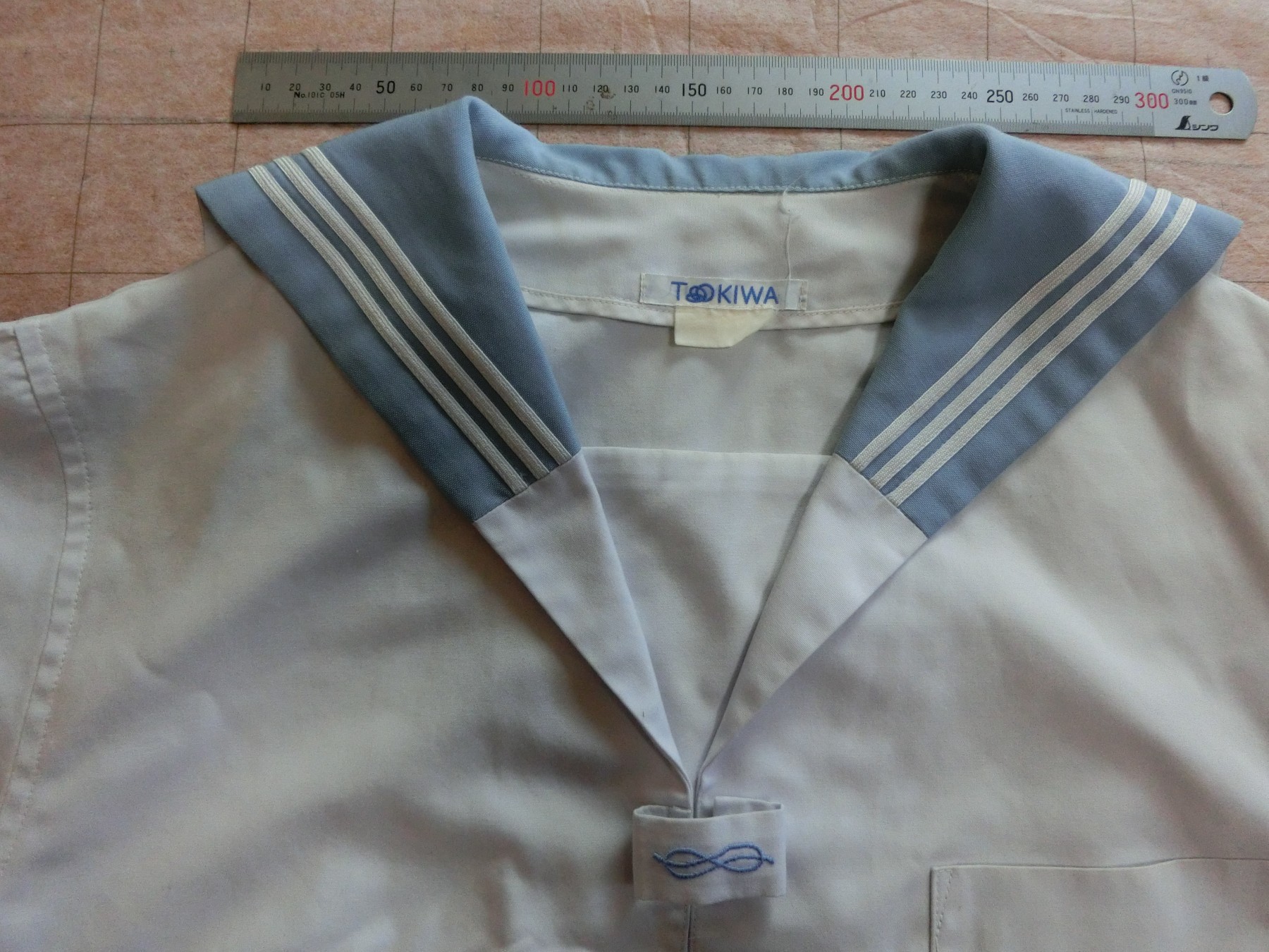 水色、白3本ラインの切り替えカラー 胸当てあり