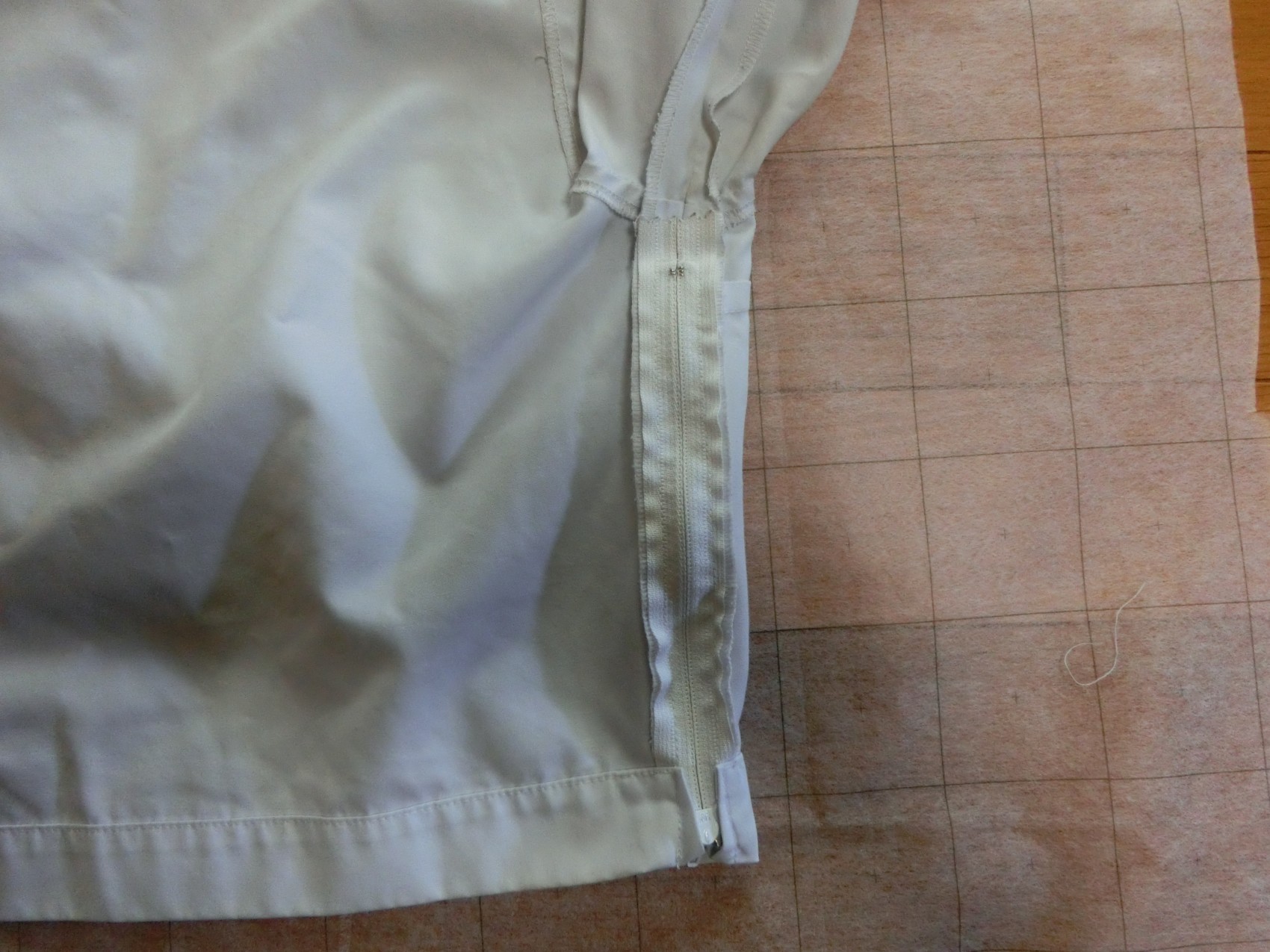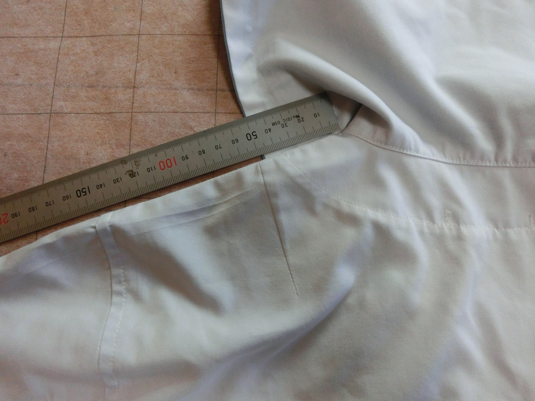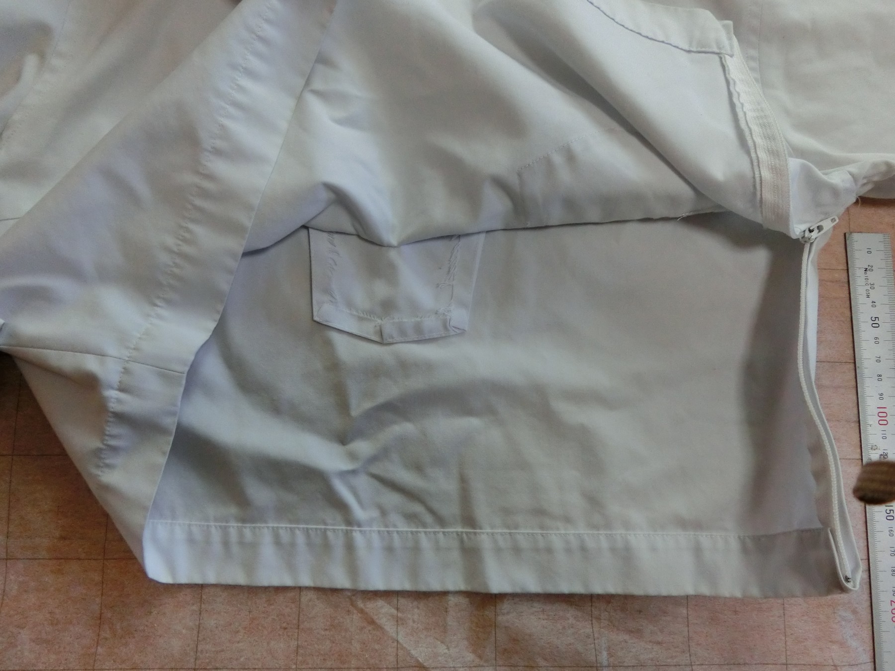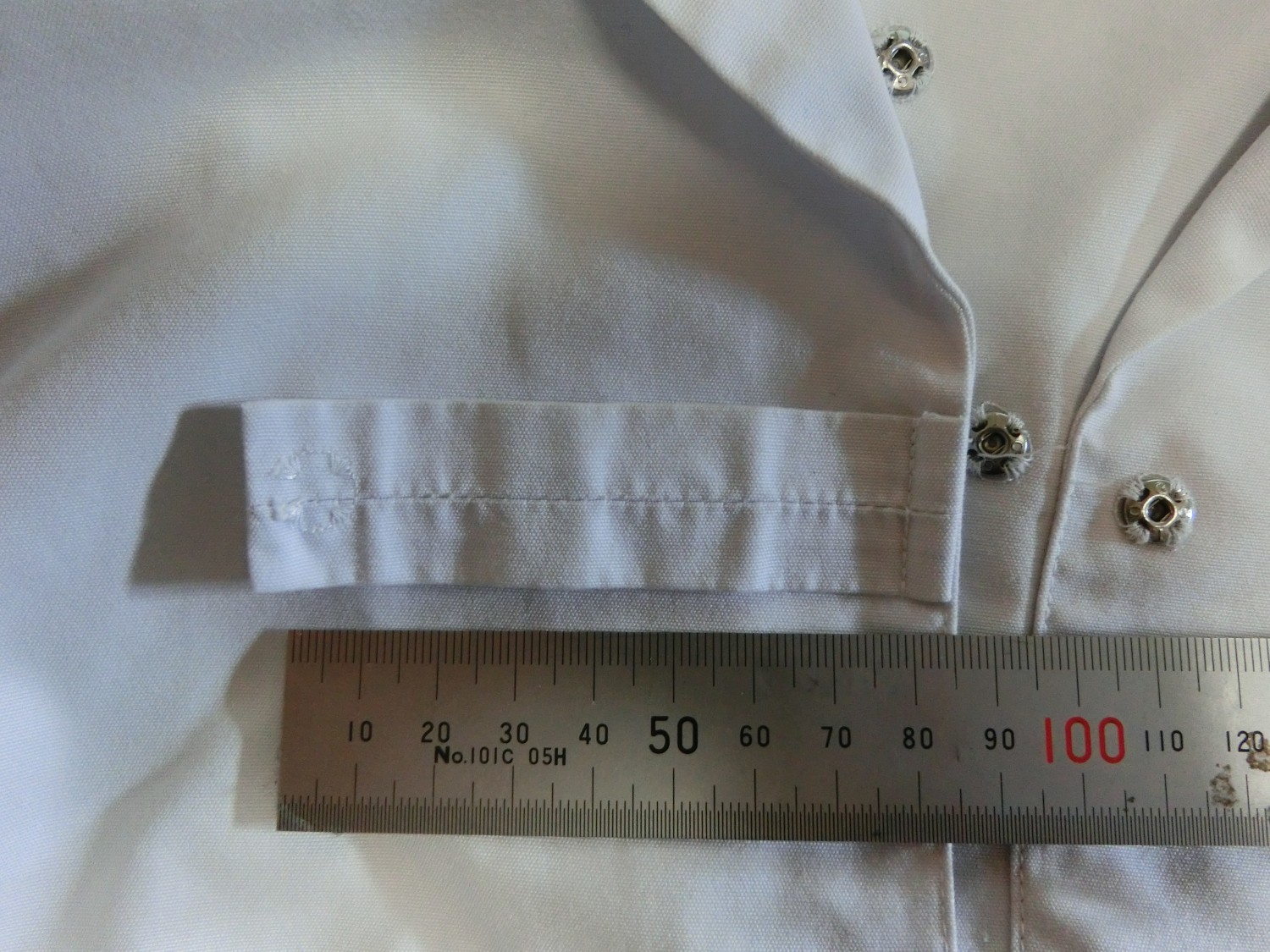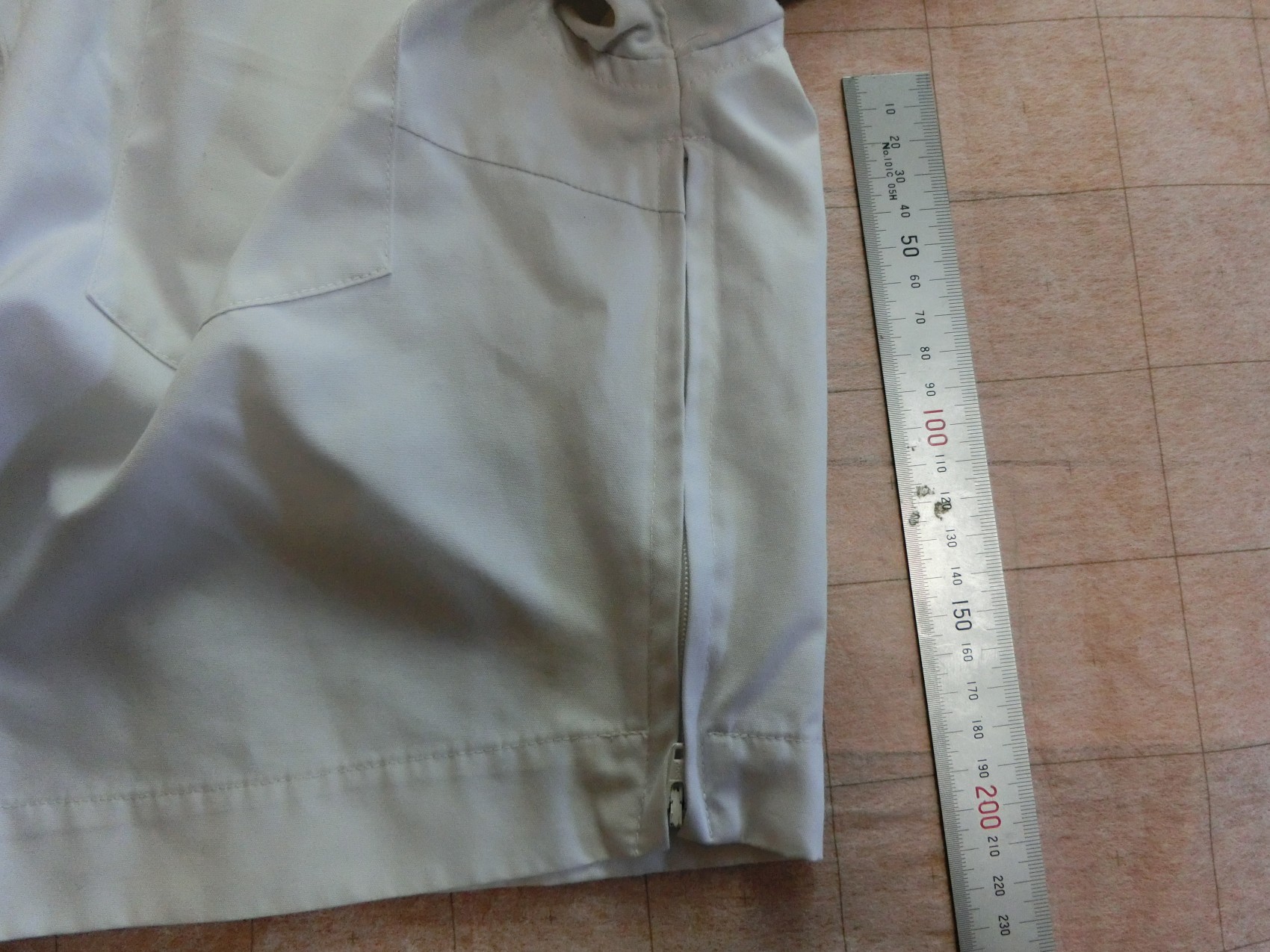 カフスは見頃と同じ白地でギャザーで袖口を縮めています 左袖に刺繍が入ってます