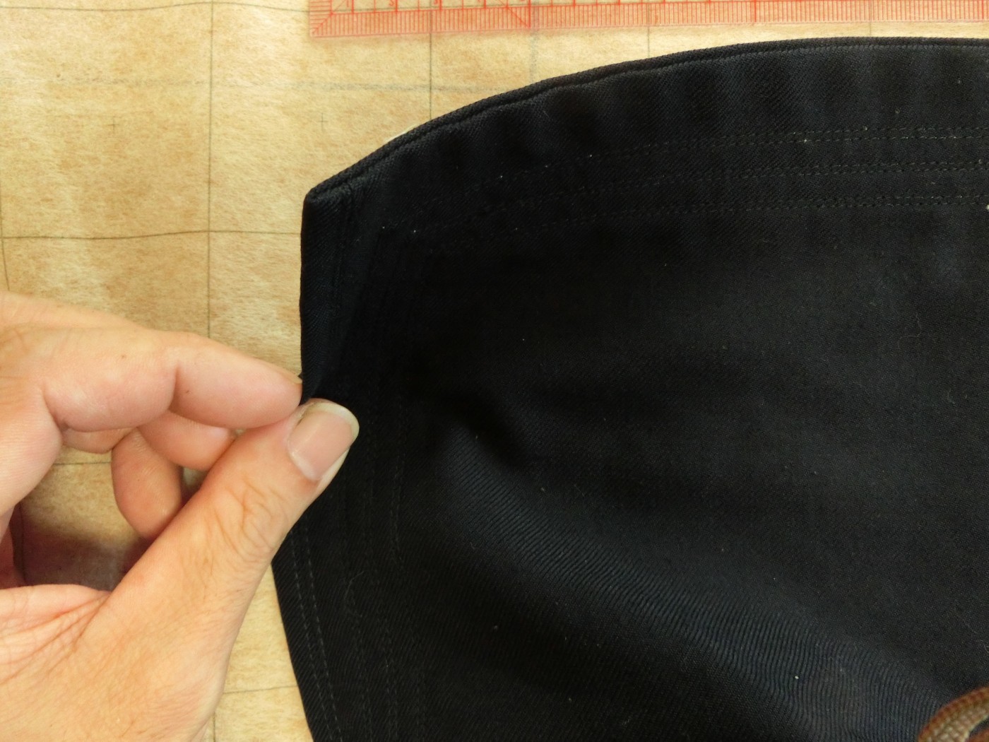 ヨシザワ襟の欠点の襟の小ささを、三角形の布を追加することで広くする工夫をしています