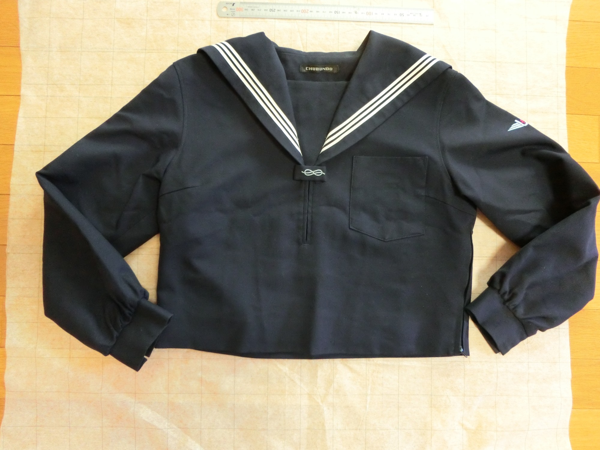 前あきが普通のセーラーカラーとは違い、V字になってない直線の切れ込みをいれた、いわゆるヨシザワ襟型です