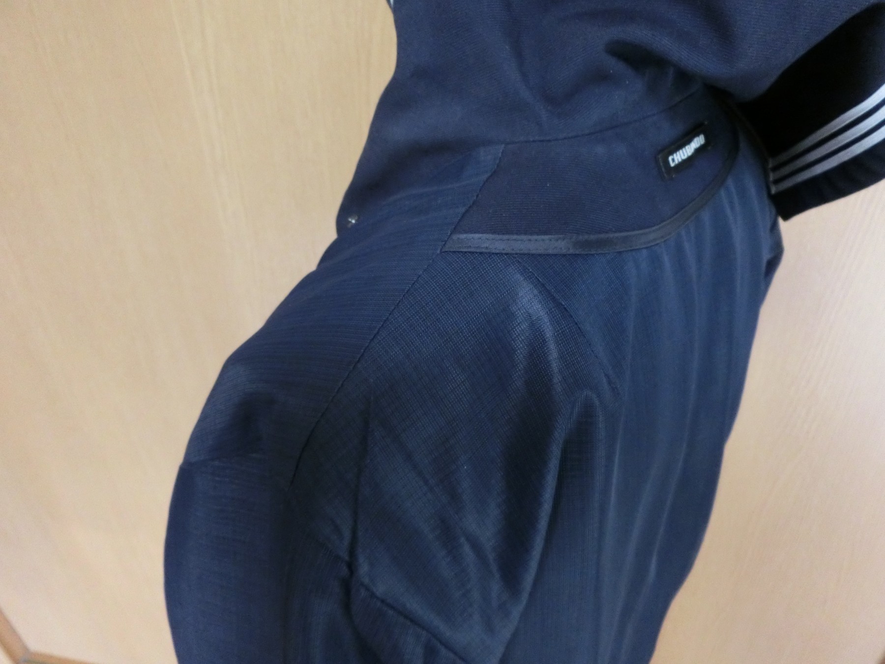 袖のカフスにライン入っていなくて、シャーリングで袖口をすぼめています