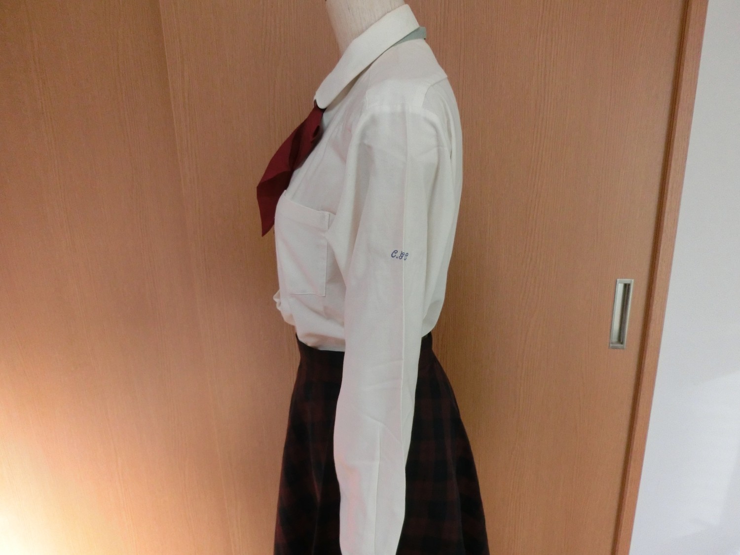 上衣スカートは森英恵だけどブラウスだけ別メーカー製です 形状は台衿付きシャツカラー 肩はヨーク仕立てです