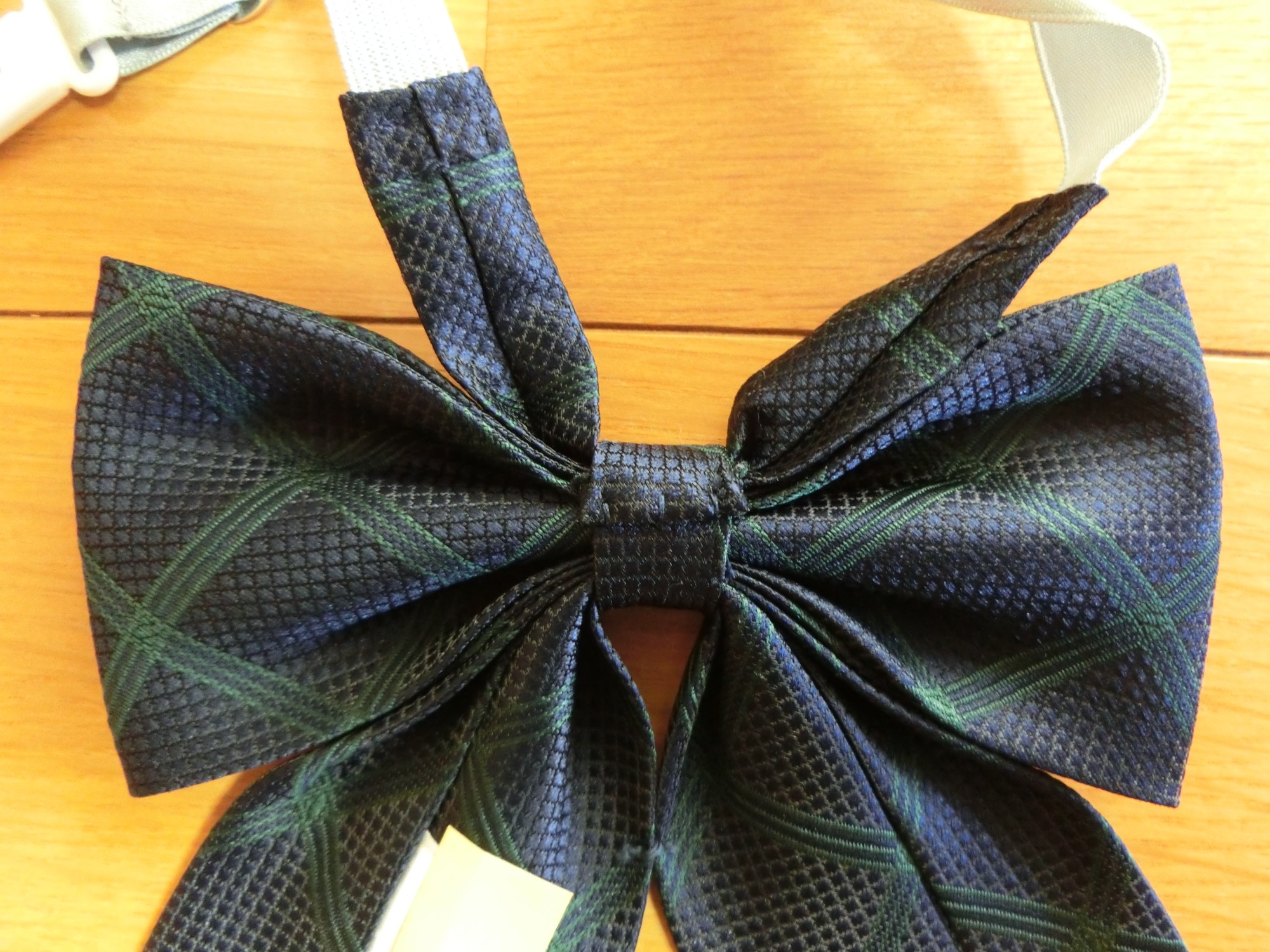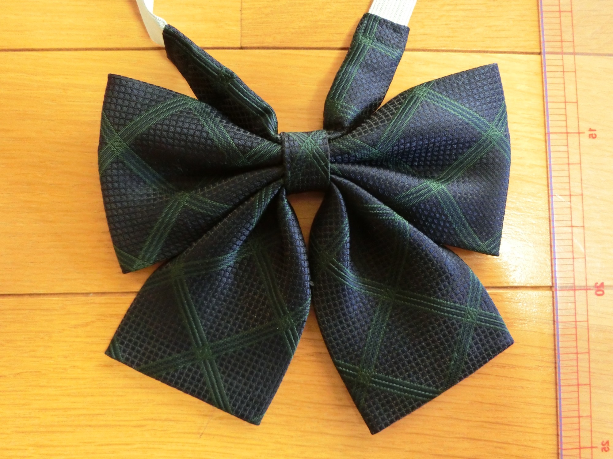 首に巻いてホックで留めるタイプです リボンの生地が硬めです