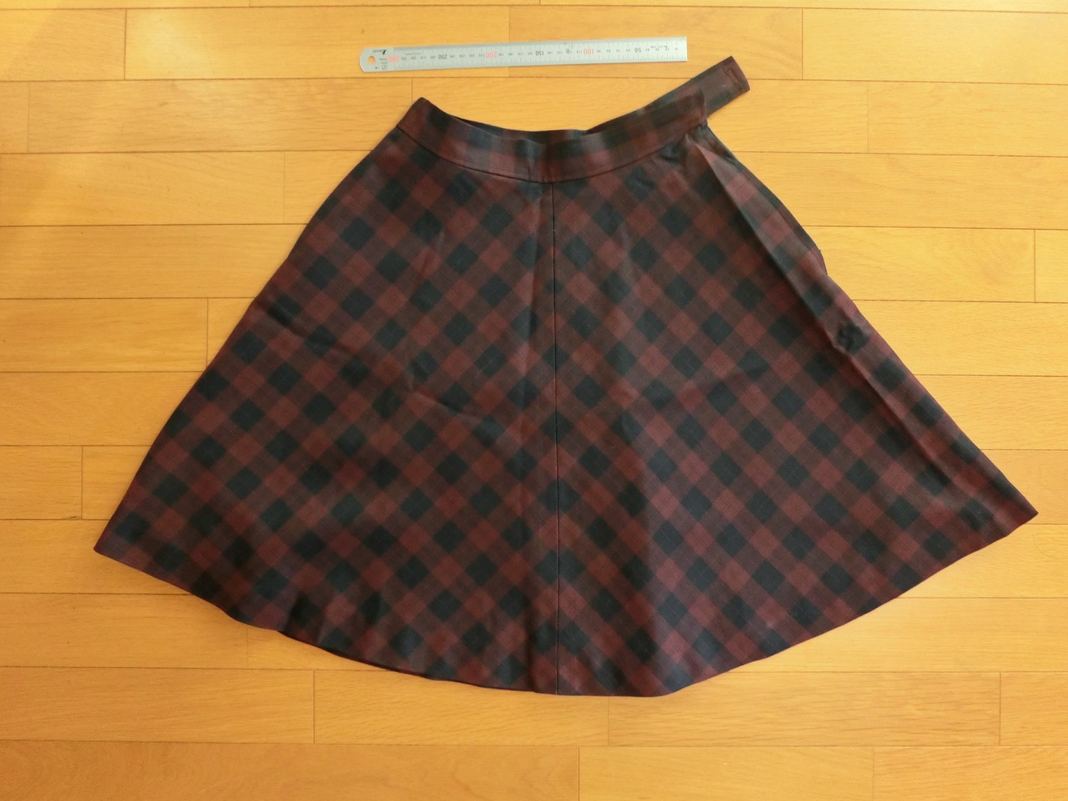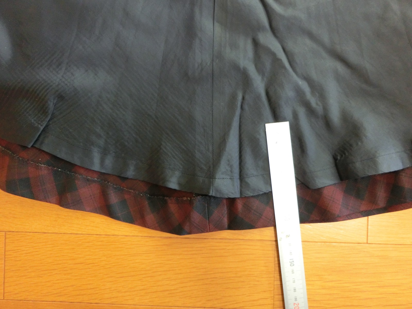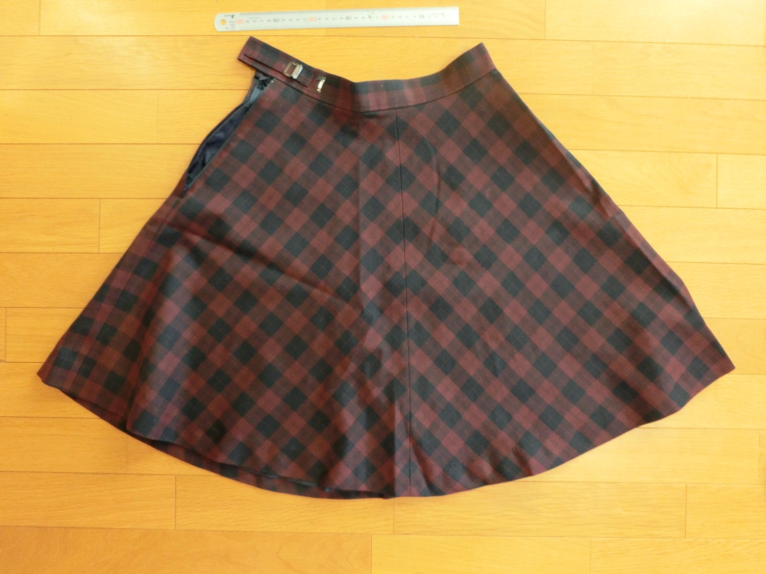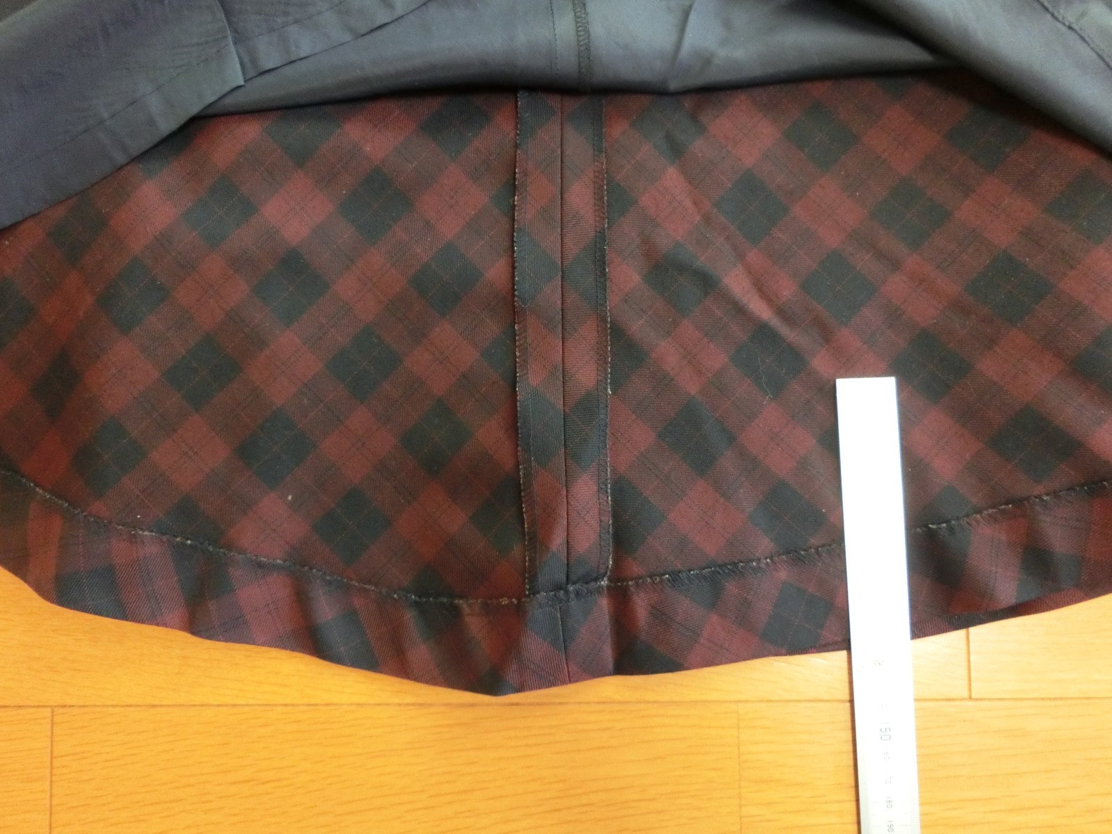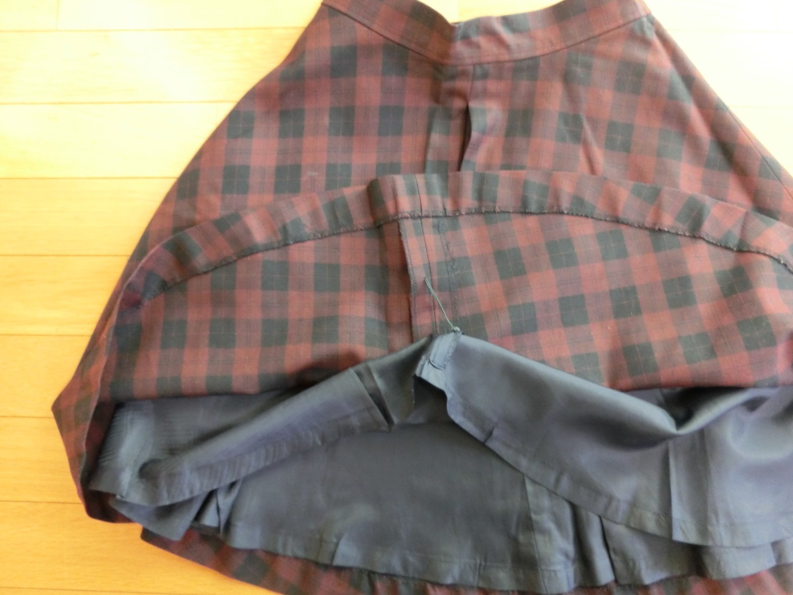 前中心 後ろ中心 両脇で分かれている4枚はぎのフレアスカート 裏地つきです